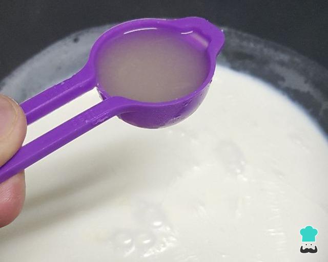 Coloque o leite em uma panela e esquente até amornar. Após o leite estar morno acrescente 2 colheres de limão espremido nele.