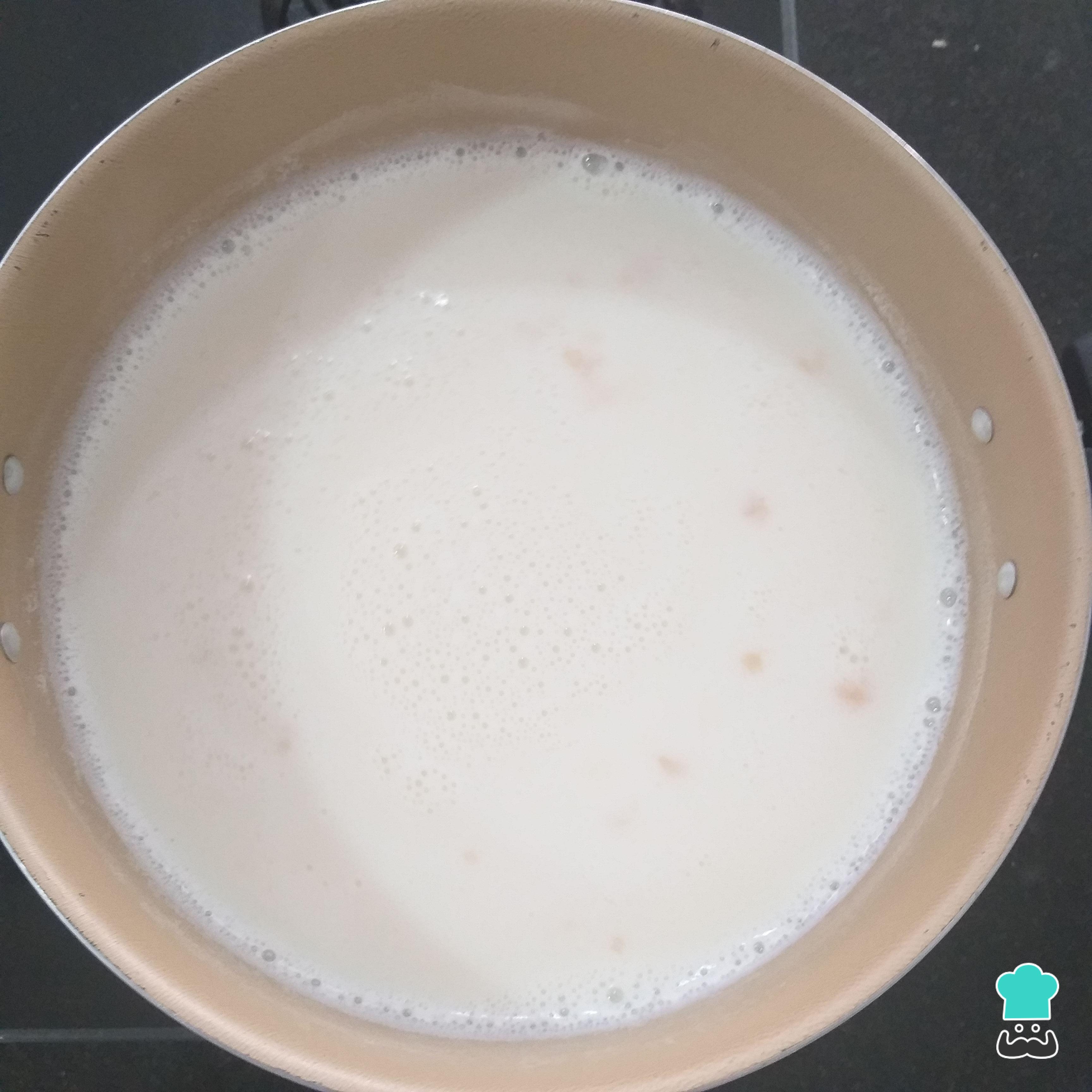 Dica: você saberá que o leite atingiu a temperatura certa quando começar formando bolhinhas de ar nas laterais da panela e no meio, como na foto.