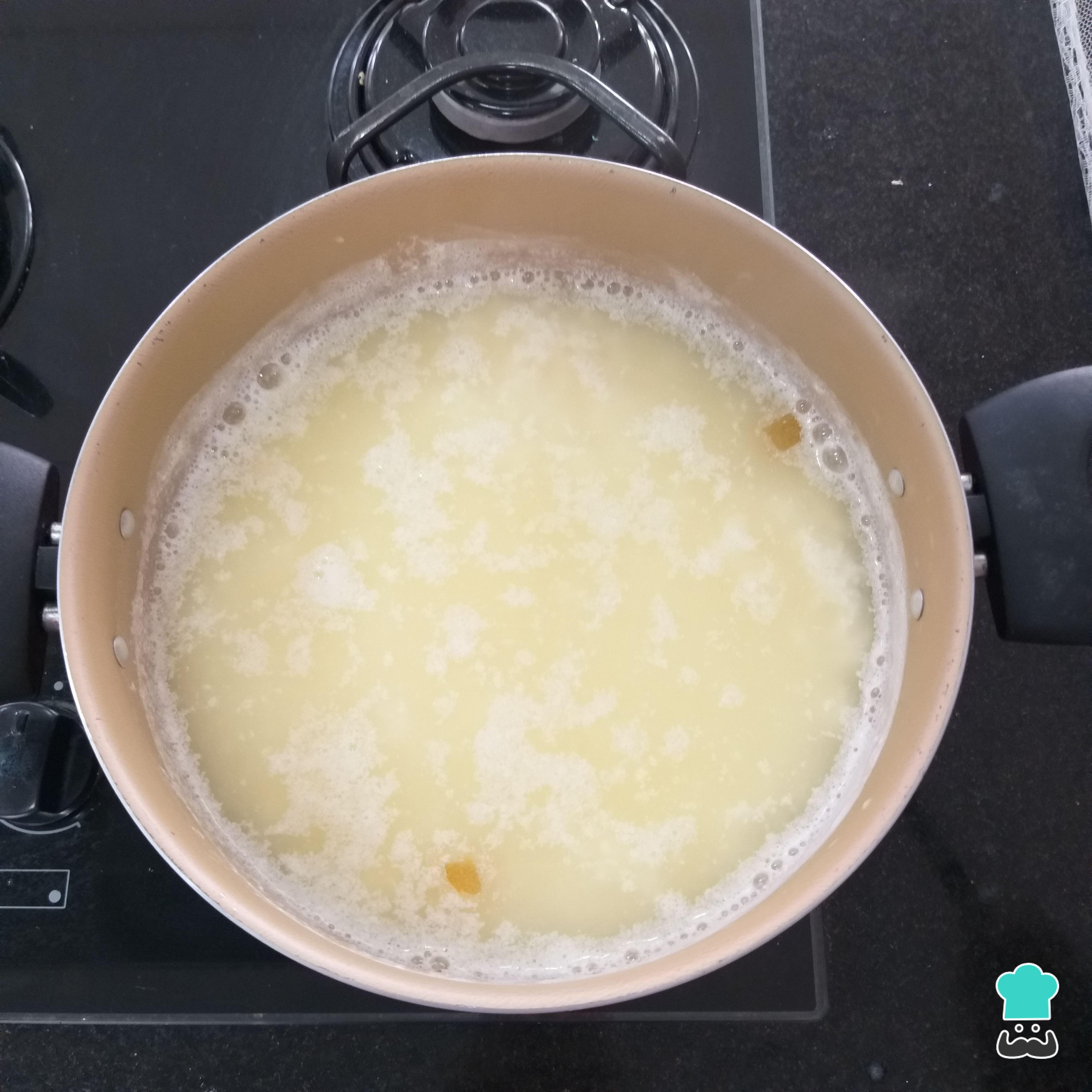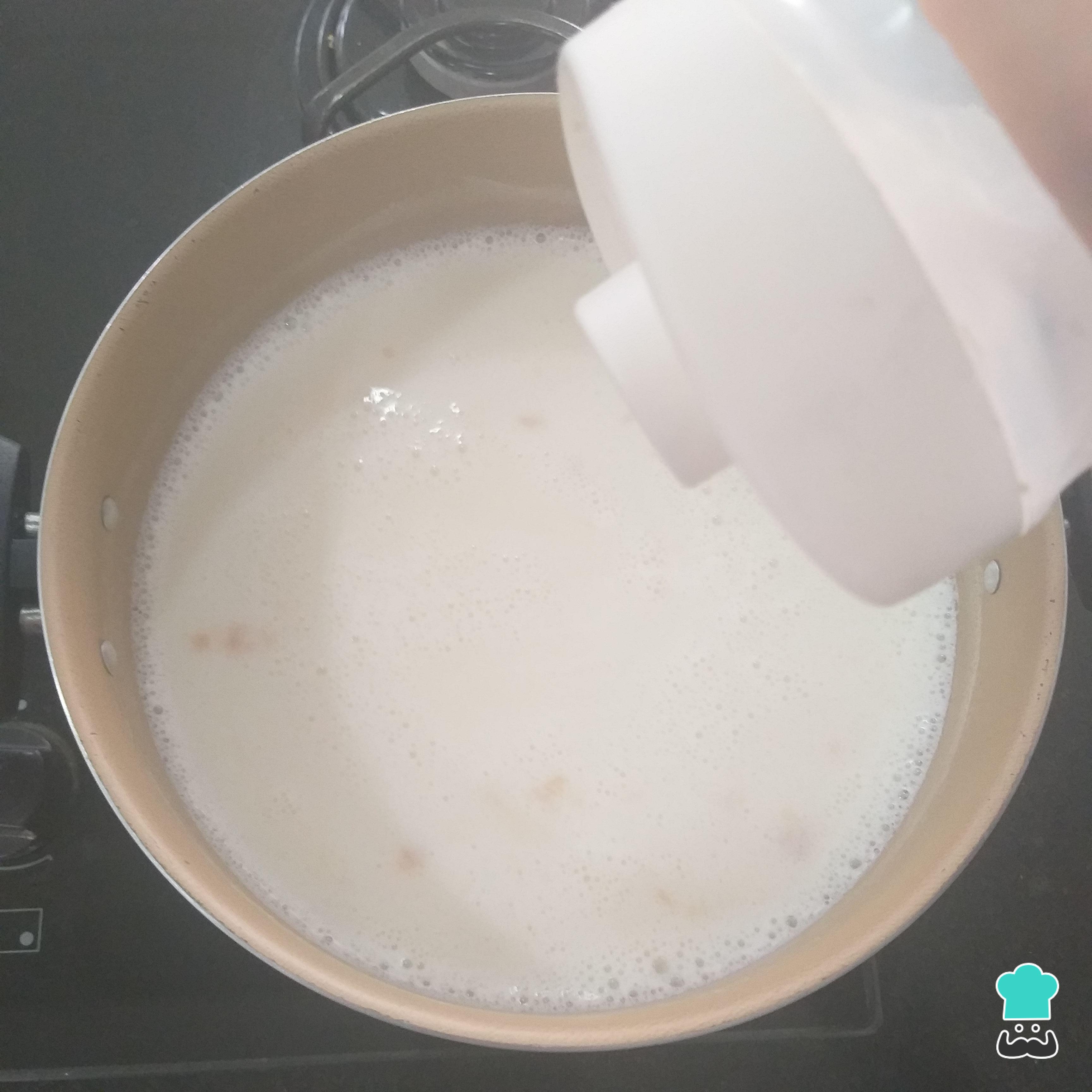 Coloque o leite sem lactose em uma panela e aqueça até atingir 90° C de temperatura - ou seja, até um pouco antes de começar a ferver.