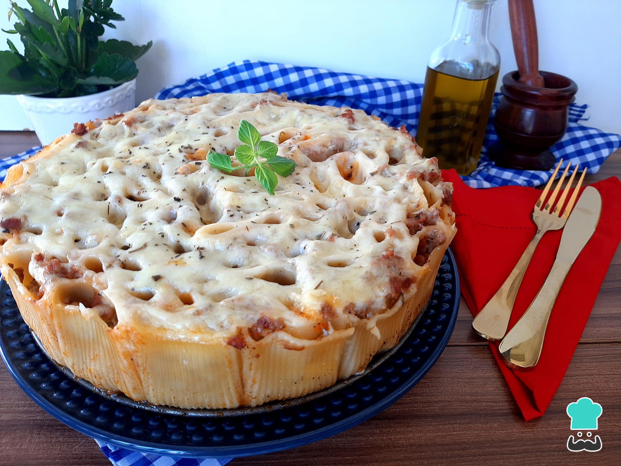 Essa massa já fica incrível recheada, com um molho bem encorpado, gratinada... agora imagine prepará-la em formato de torta, com um recheio à bolonhesa e coberto com queijo mussarela? Pensou que é uma tarefa difícil? Pois, saiba que aqui no TudoReceitas vamos te explicar todos os truques para preparar essa deliciosa torta de rigatoni! Você poderá preparar outras vezes depois, com o recheio que desejar!