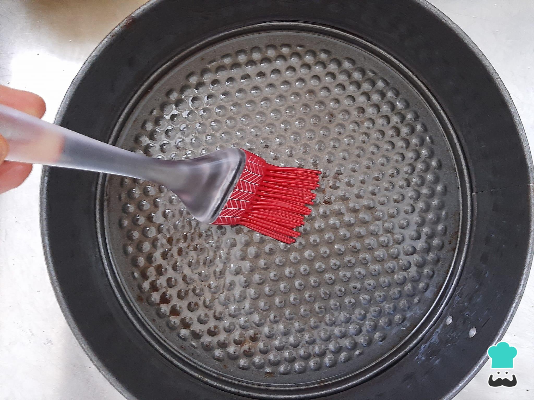Pincele uma forma de fundo removível (fundo e laterais) com azeite de oliva ou óleo.