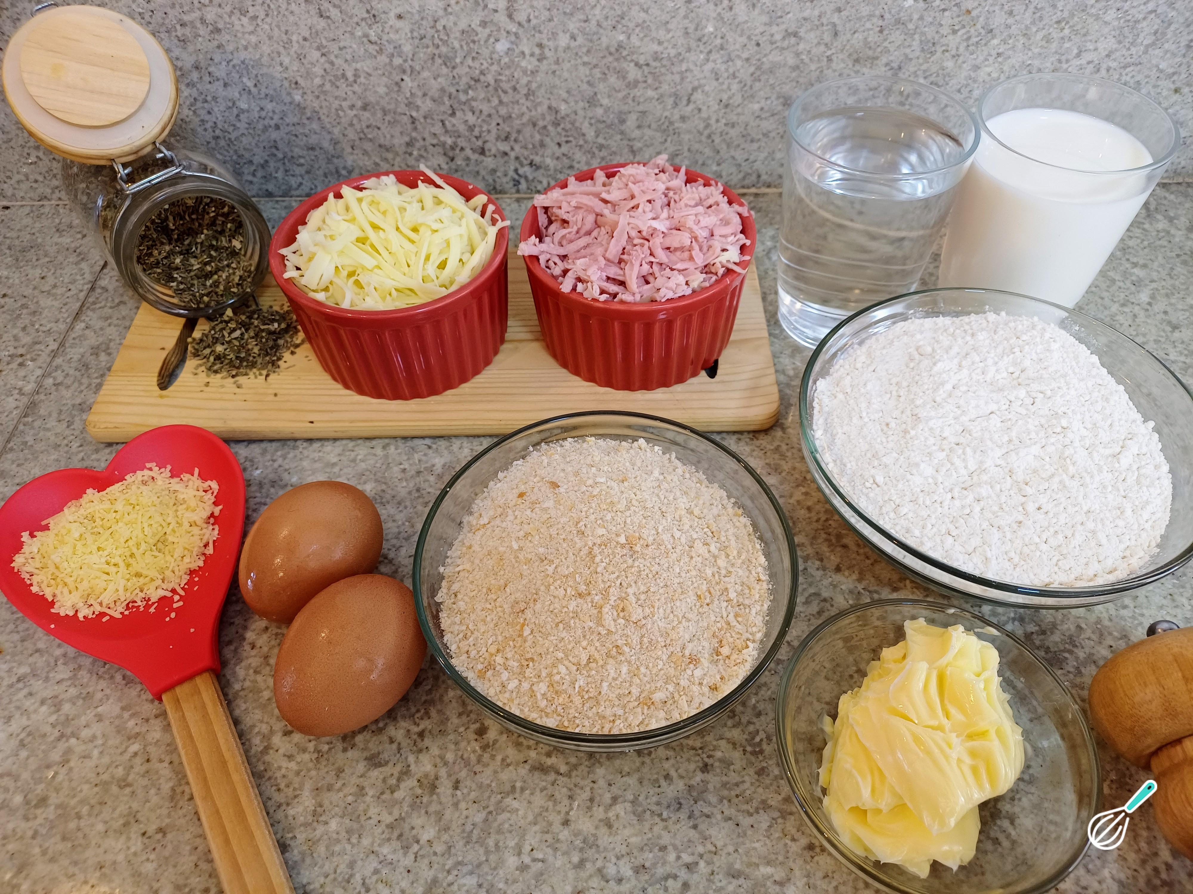Comece separando todos os ingredientes e utensílios para o preparo da receita de Risoles de Pizza.