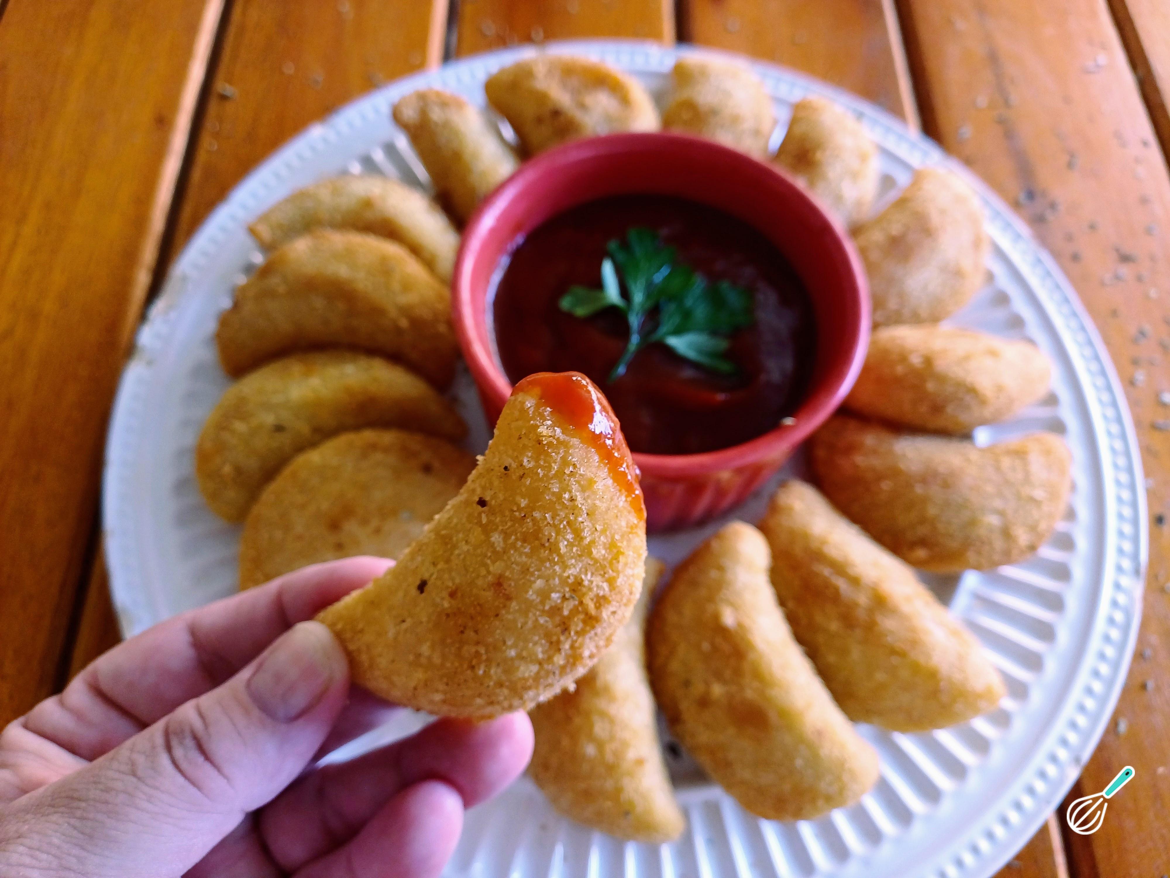 Seu risoles de pizza está pronto, sirva com o molho de sua preferência. Bom apetite!