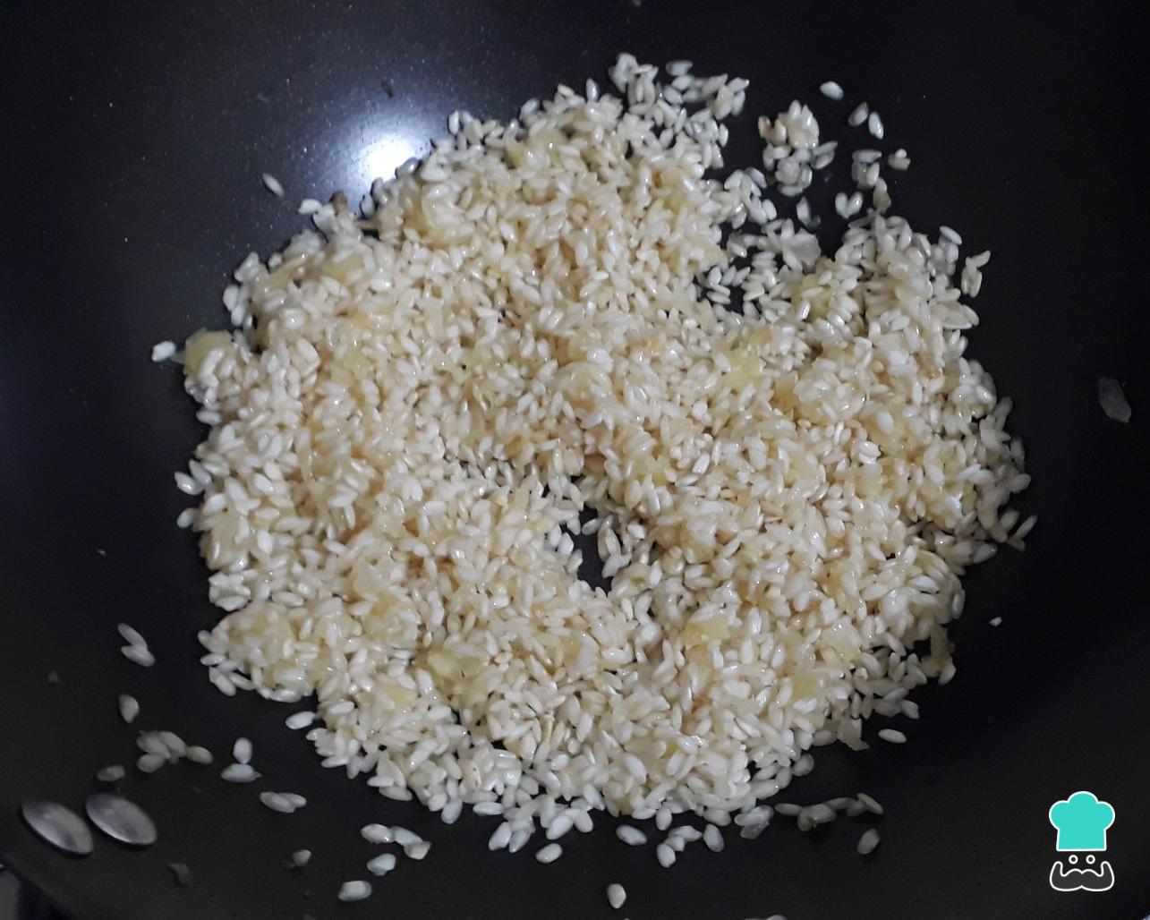 Dica: Não deixe a cebola queimar para evitar gosto aguardo no risoto.