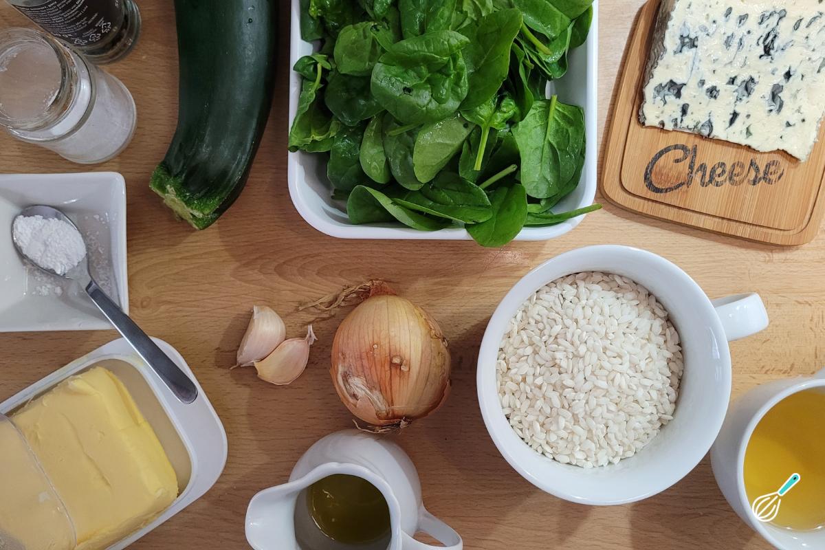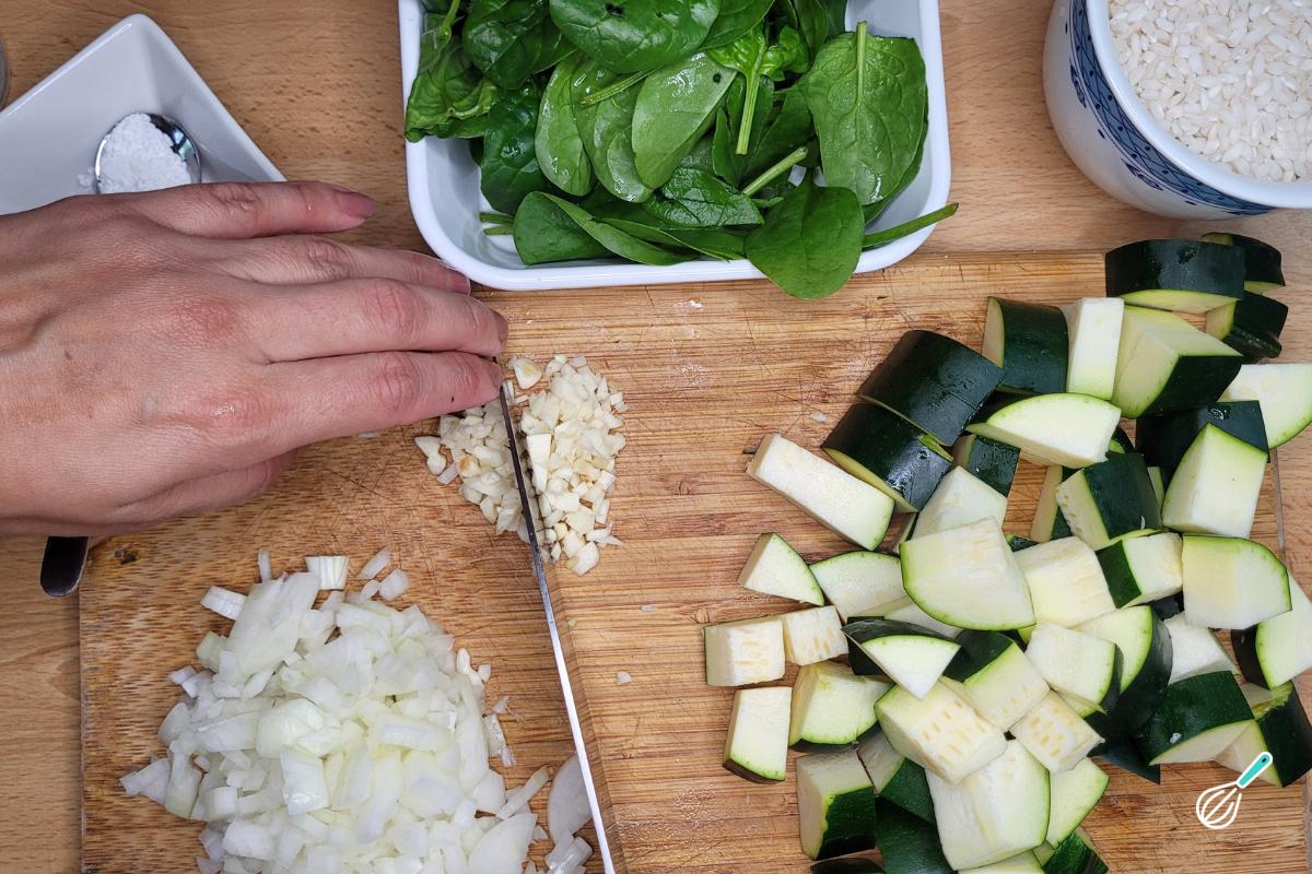Separe os ingredientes para fazer seu risoto de abobrinha cremoso.