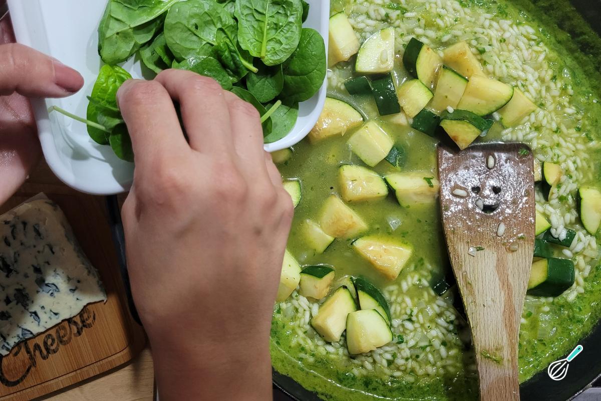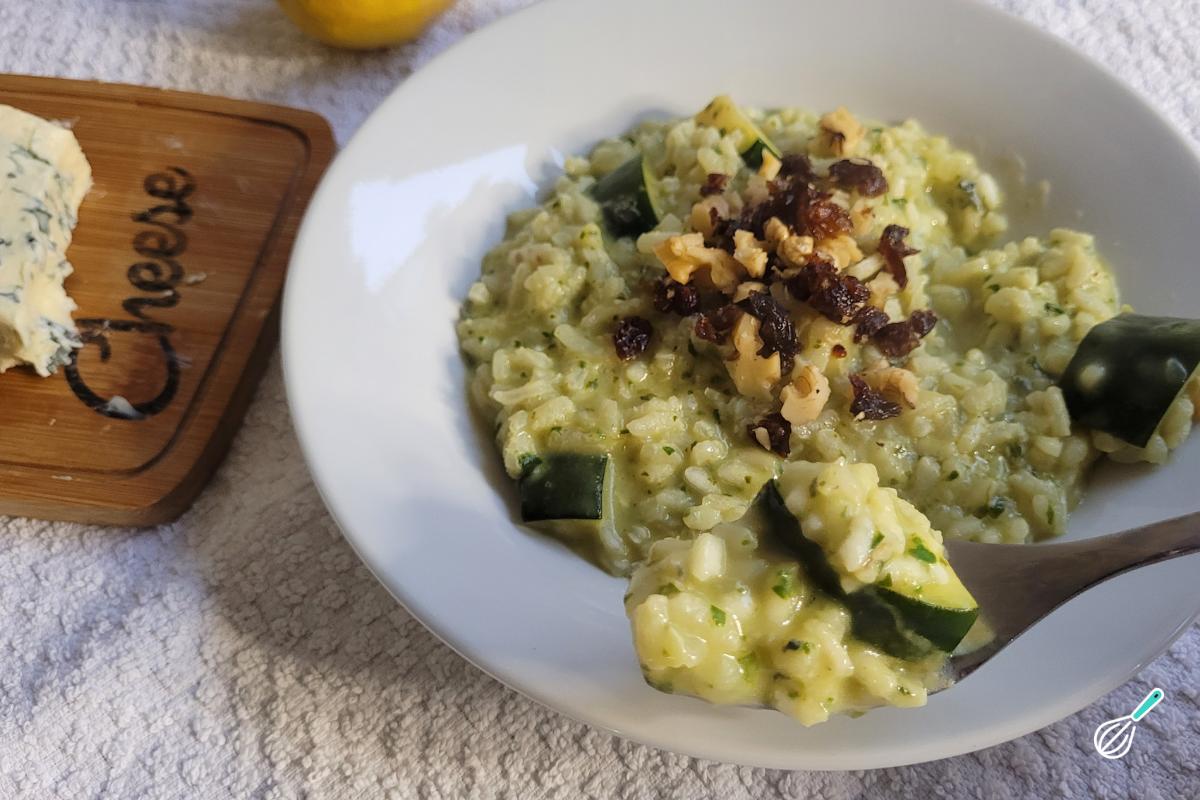 Se você ama risotos diferentes, você precisa provar esse risoto de abobrinha com espinafre e gorgonzola. Uma combinação de sabores super diferente para você inovar no risoto de sempre e surpreender. Uma alternativa super diferente com mais vegetais e super fácil de fazer. E ainda leva uma "farofinha" crocante por cima com nozes e passas que cria um agridoce e contrasta muito bem com o sabor mais marcante do gorgonzola.