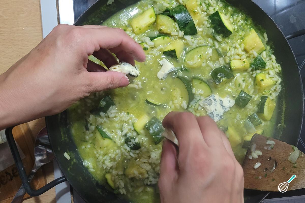 Coloque o queijo gorgonzola esfarelado e misture para que derreta.