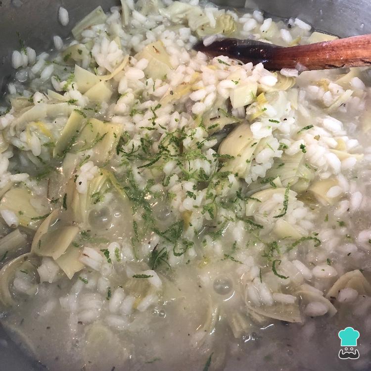 Só então acrescente as alcachofras picadas, as raspas de limão e as ervas de Provence. Misture tudo.