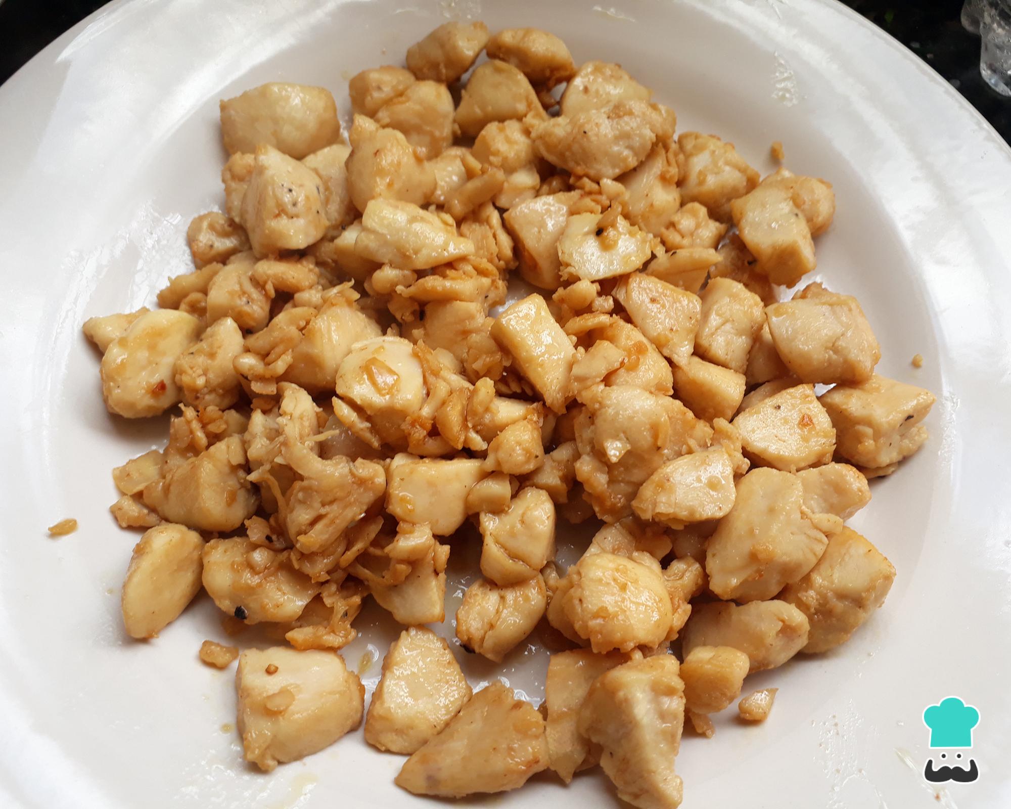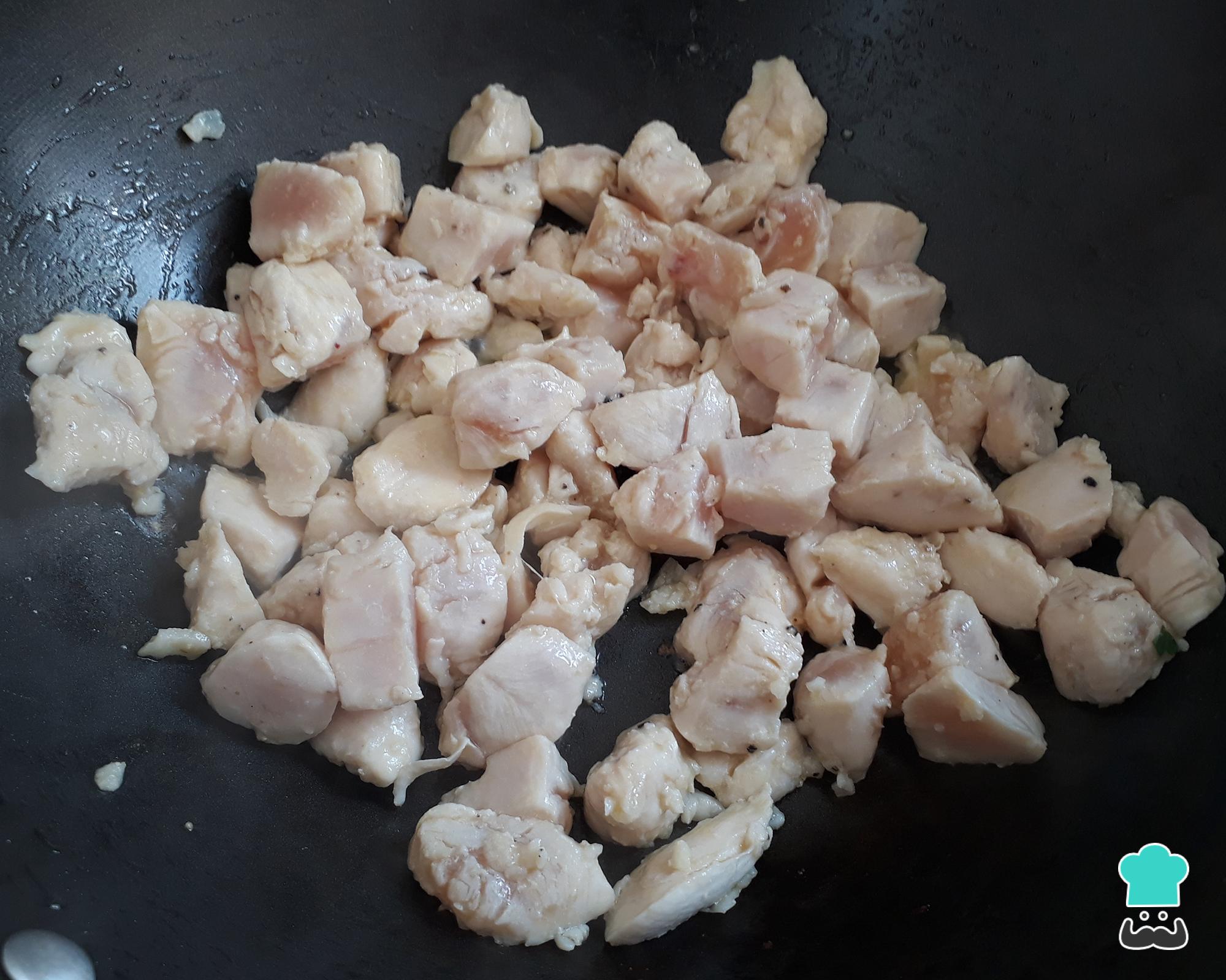 Após dourar bem o frango, como na foto, reserve-o.
