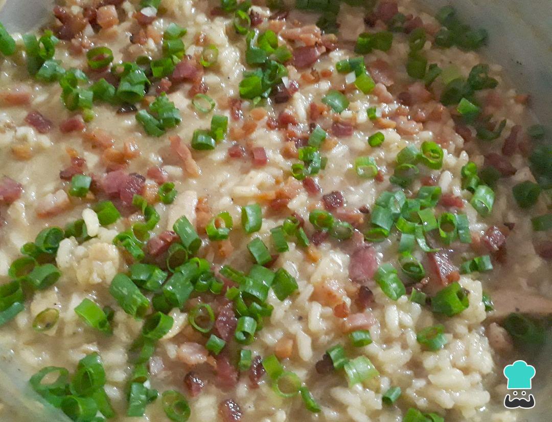 Por fim, salpique o bacon e a cebolinha picada e sirva-se! Agora você sabe como fazer risoto de frango cremoso em sua casa e na verdade até é simples, não é mesmo? Experimente e diga nos comentários o que você achou. Bom apetite!