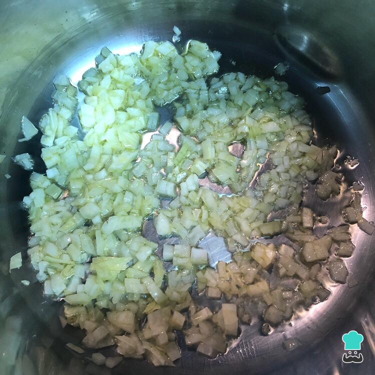 Em uma panela refogue a cebola no azeite.