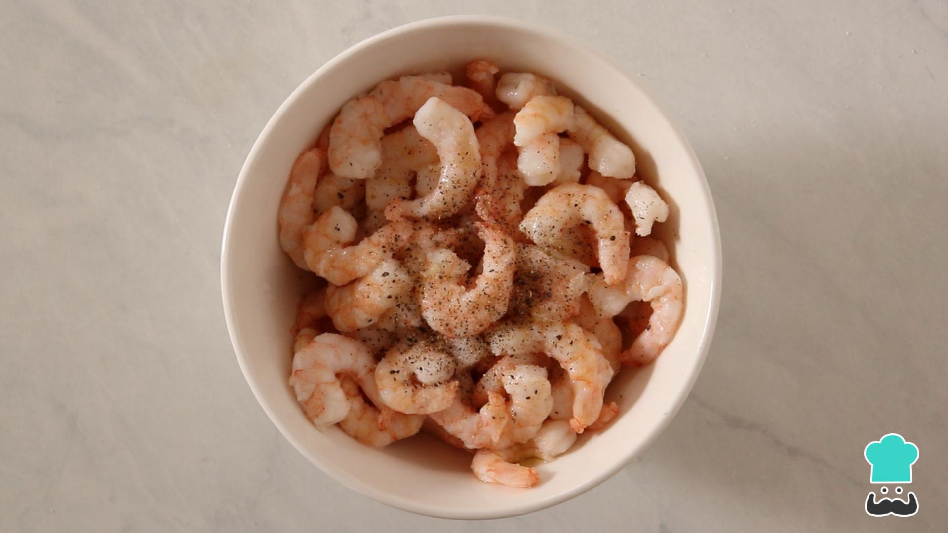 Tempere os camarões espremendo metade do limão, um fio de azeite, sal e pimenta.