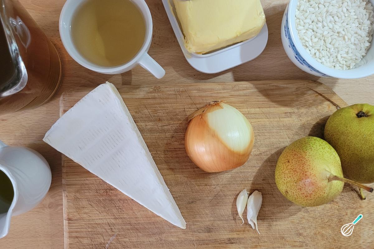 Separe os ingredientes para fazer seu risoto de pera com brie.