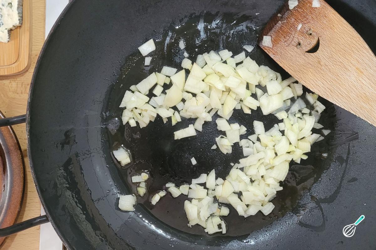 Quando estiver bem dourada de todos os lados, reserve. Na mesma panela, coloque mais azeite (se necessário) e refoque a cebola.