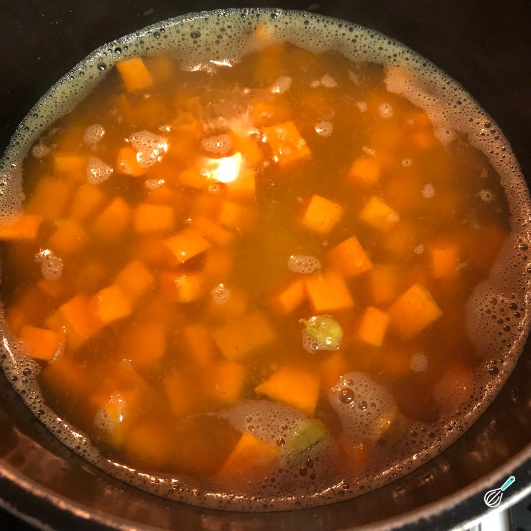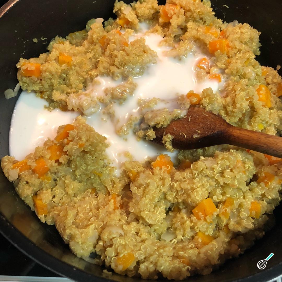 Por último, adicione o leite de coco. Misture até incorporar e, se achar necessário, adicione mais sal ou um pouco mais de alguma das especiarias.