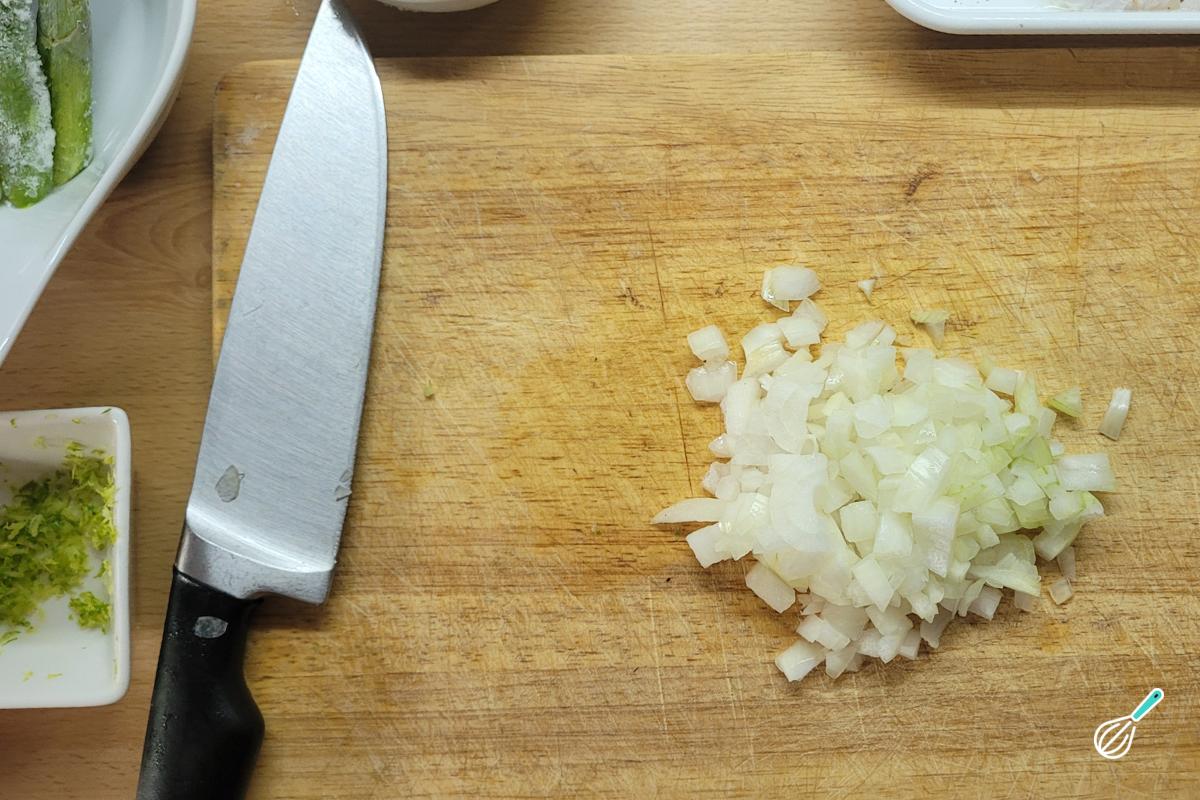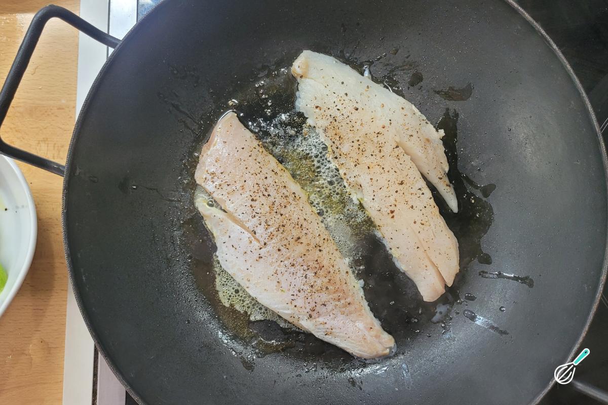Reserve os filés de peixe dourados e na mesma frigideira adicione a cebola para refogar.