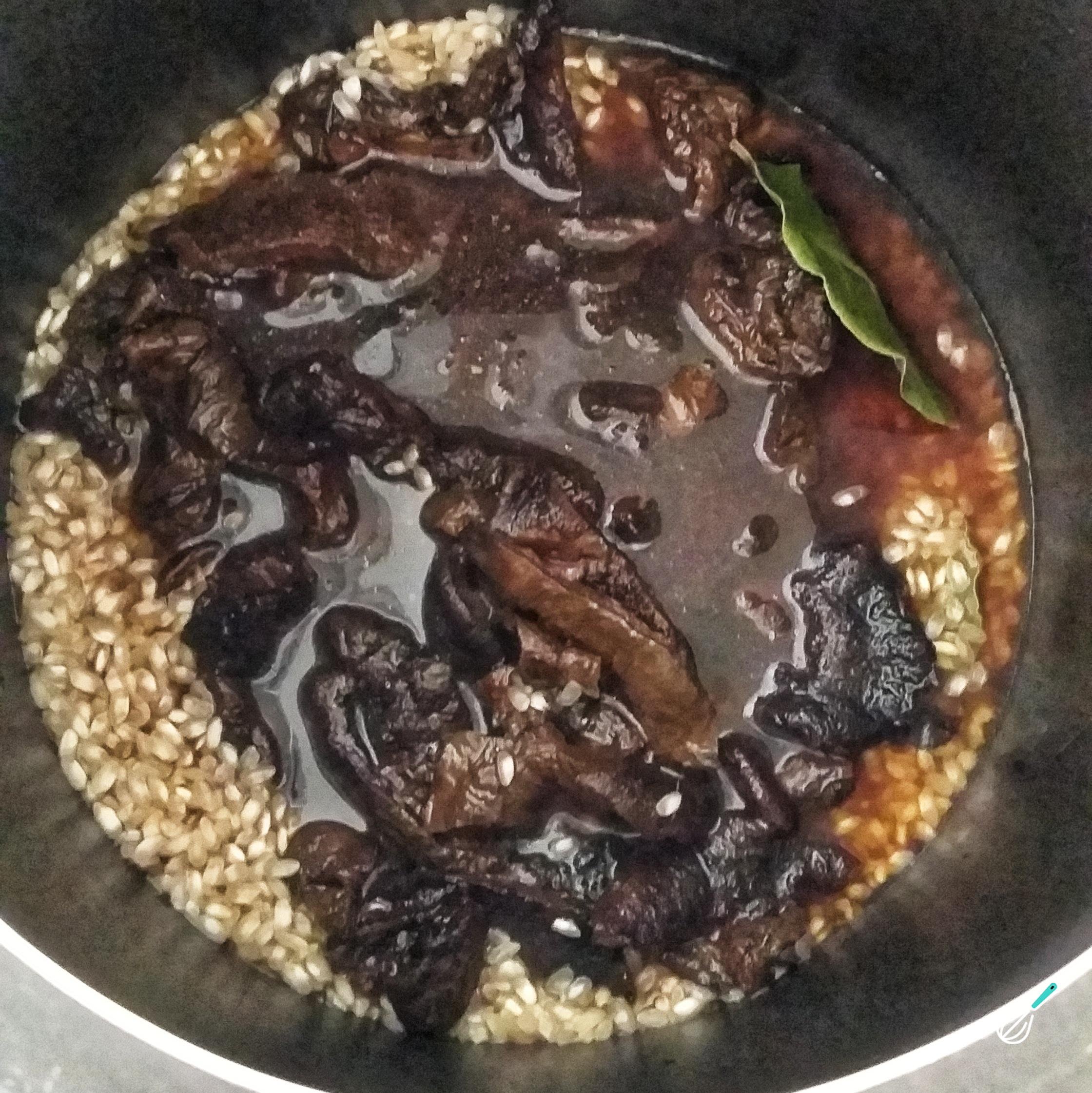 Primeiramente é preciso hidratar o funghi. Para isso separe 1 xícara de chá de caldo de legumes morno e deixe o funghi de molho nesse cado por, no mínimo, 30 minutos.