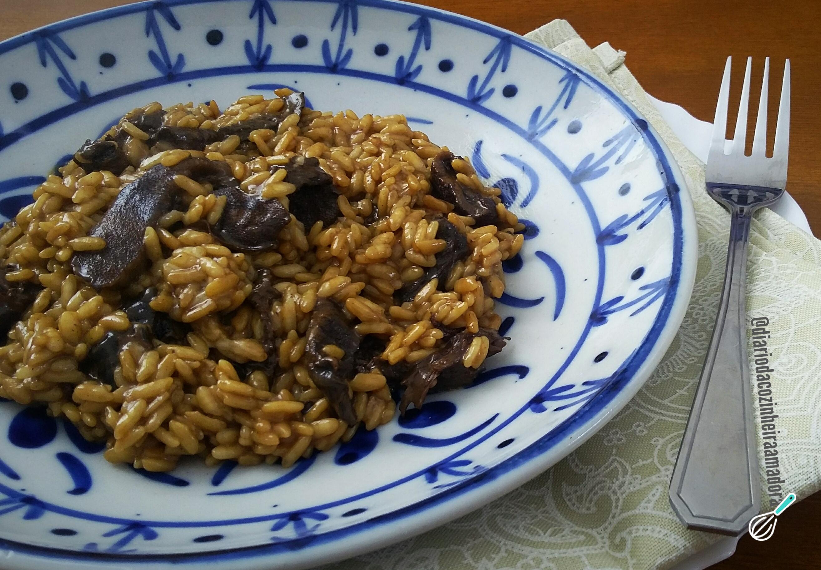 Eu amo risoto, mas não amo ficar um tempão em frente à panela mexendo e colocando caldo. Por isso, adoro essa receita de risoto ao funghi na panela de pressão.