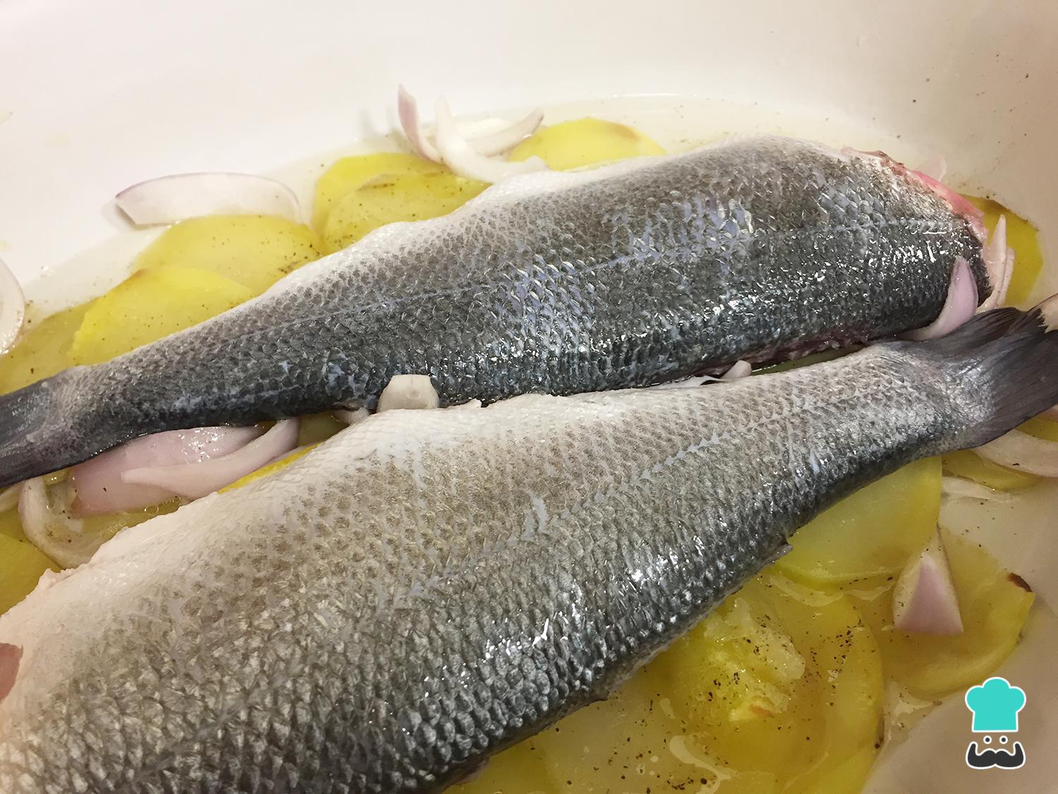 Quando observar que a pele do robalo está começando a dourar, vire o peixe e deixe no forno por mais 10-15 minutos.
