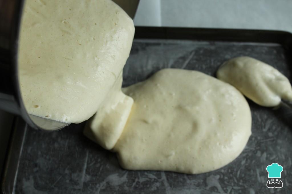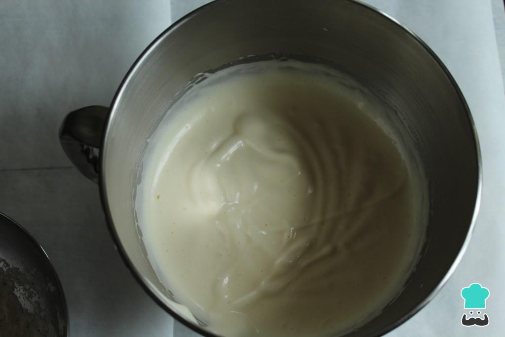 Sem parar de bater, adicione as gemas, o açúcar, a água, a farinha e o fermento. Adicione por esta mesma ordem, e esperando que o ingrediente anterior esteja completamente incorporado antes de adicionar o próximo.