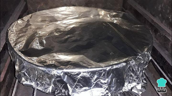 Cubra com papel alumínio e leve ao forno pré aquecido a 180ºC por 30 minutos.