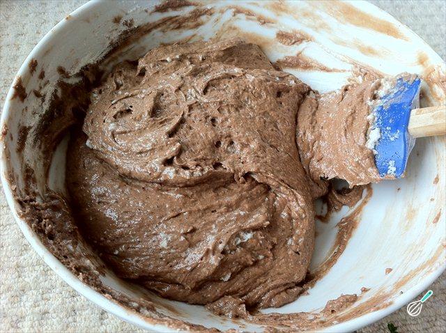 Adicione um pouco dos ingredientes secos à mistura de claras, e incorpore cuidadosamente com uma espátula, fazendo movimentos de baixo para cima, para não perder o ar. Repita até esgotar os ingredientes.