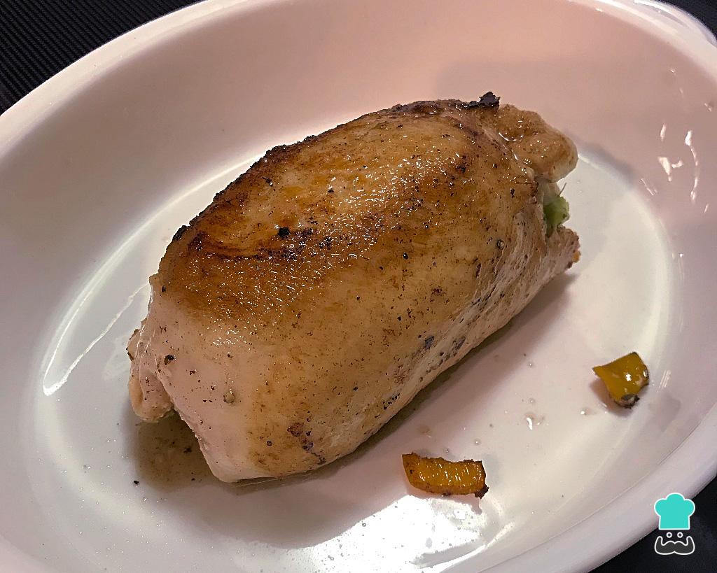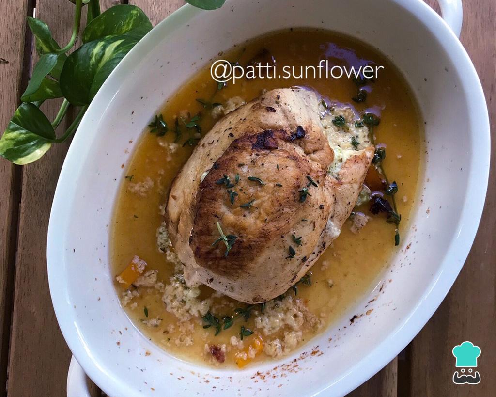 Dica: Aperte bem o recheio para que ele não escape do interior do frango.
