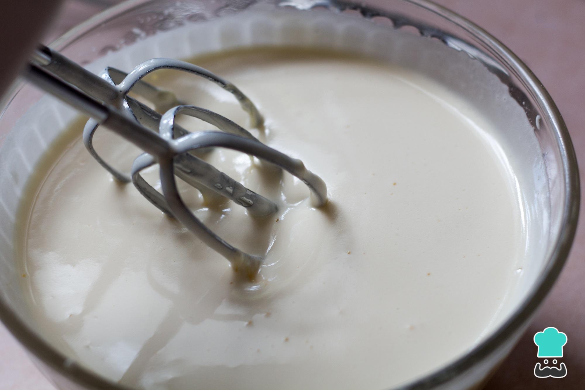 Para fazer esta receita de rocambole comece por bater as claras de ovo em neve, até que fiquem firmes.