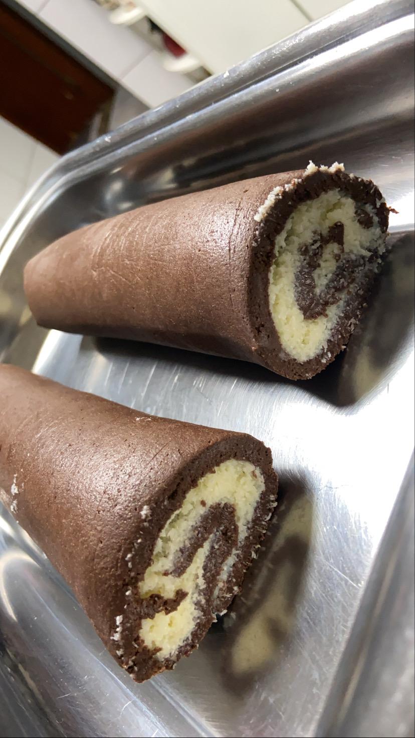 Dica: É importante apertar bem o rocambole no momento de enrolar para que não fique com falhas nem bolhas de ar.