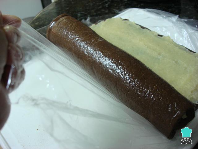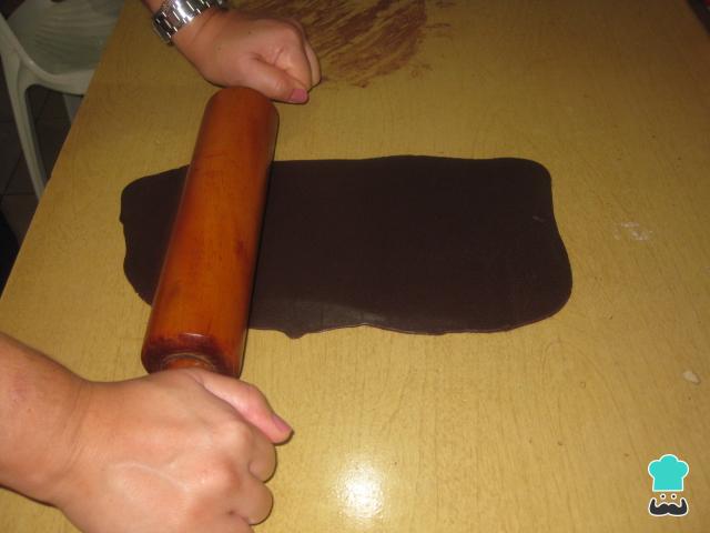 Dica: Polvilhe a massa com chocolate ou cacau em pó para que não grude no rolo.