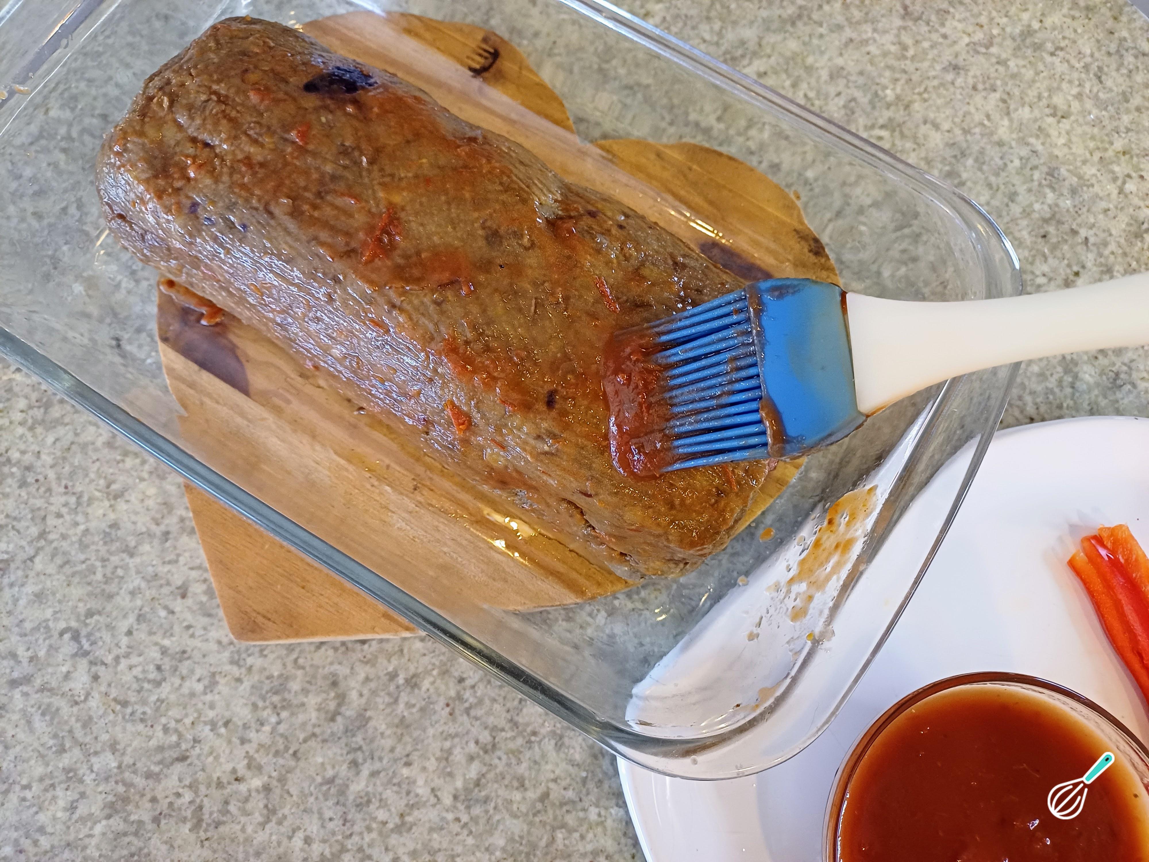 Seu rocambole de lentilha está pronto! Retire do forno e espalhe o restante do molho do tomate aquecido.