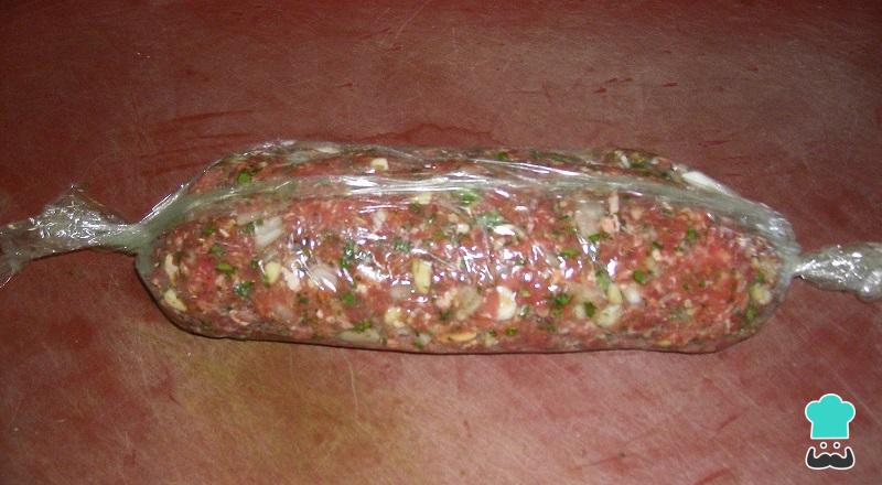 - Prepare este rolo com 500 gr de carne picada de bovino e 500 gr de carne picada de porco.