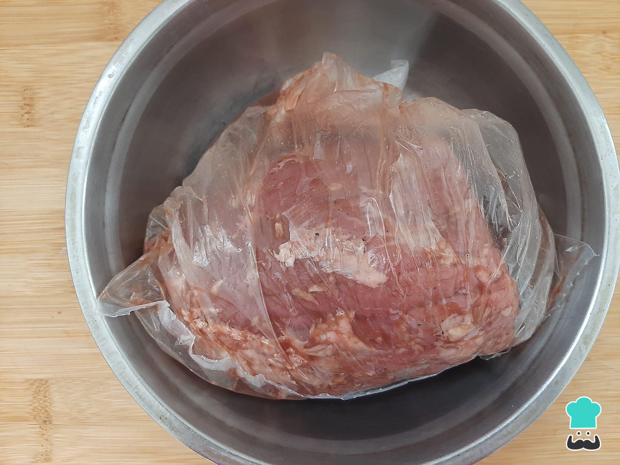Para deixar o tempero penetrar melhor na carne, siga este truque: verta a marinada para um saco limpo e coloque a carne dentro, fechando o saco em seguida. Ao longo das 12 horas seguintes vire a carne de tempos em tempos, para que a marinada envolva-a por completo.