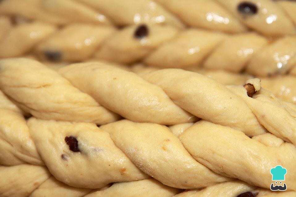 Em uma superfície enfarinhada abra a massa com o rolo e recheie ao seu gosto. Eu costumo utilizar uma mistura de coco ralado com açúcar a gosto, por isso indiquei esses ingredientes, outras vezes uso frutas secas, como na rosca de Natal. Faça os rolinhos e arme como trança ou da maneira que preferir.