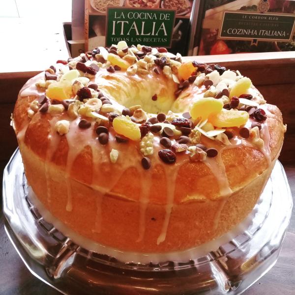 Finalmente leve a rosca a assar no forno preaquecido a 180ºC por 15 minutos. Retire, pincele a gema de ovo batida e leve de novo ao forno, desta vez por mais 20-25 minutos.
