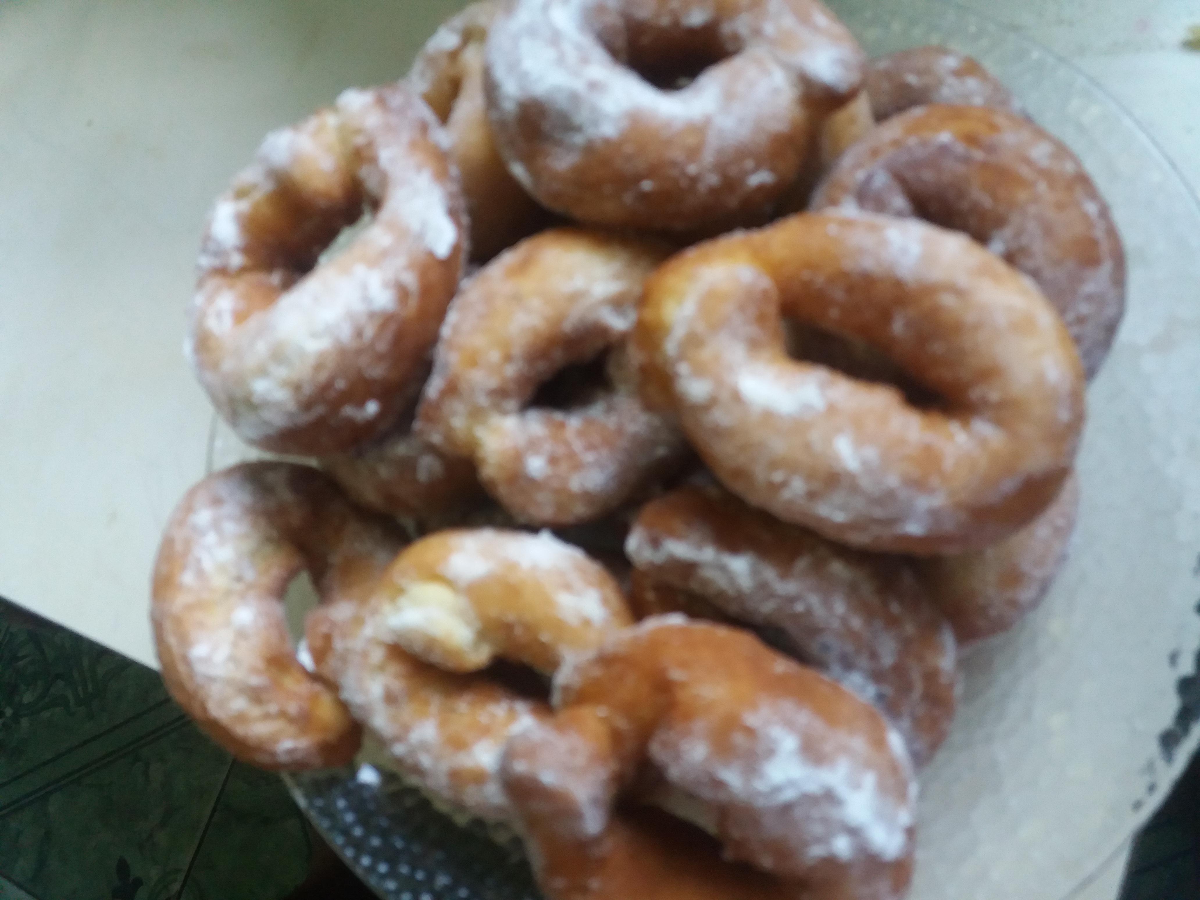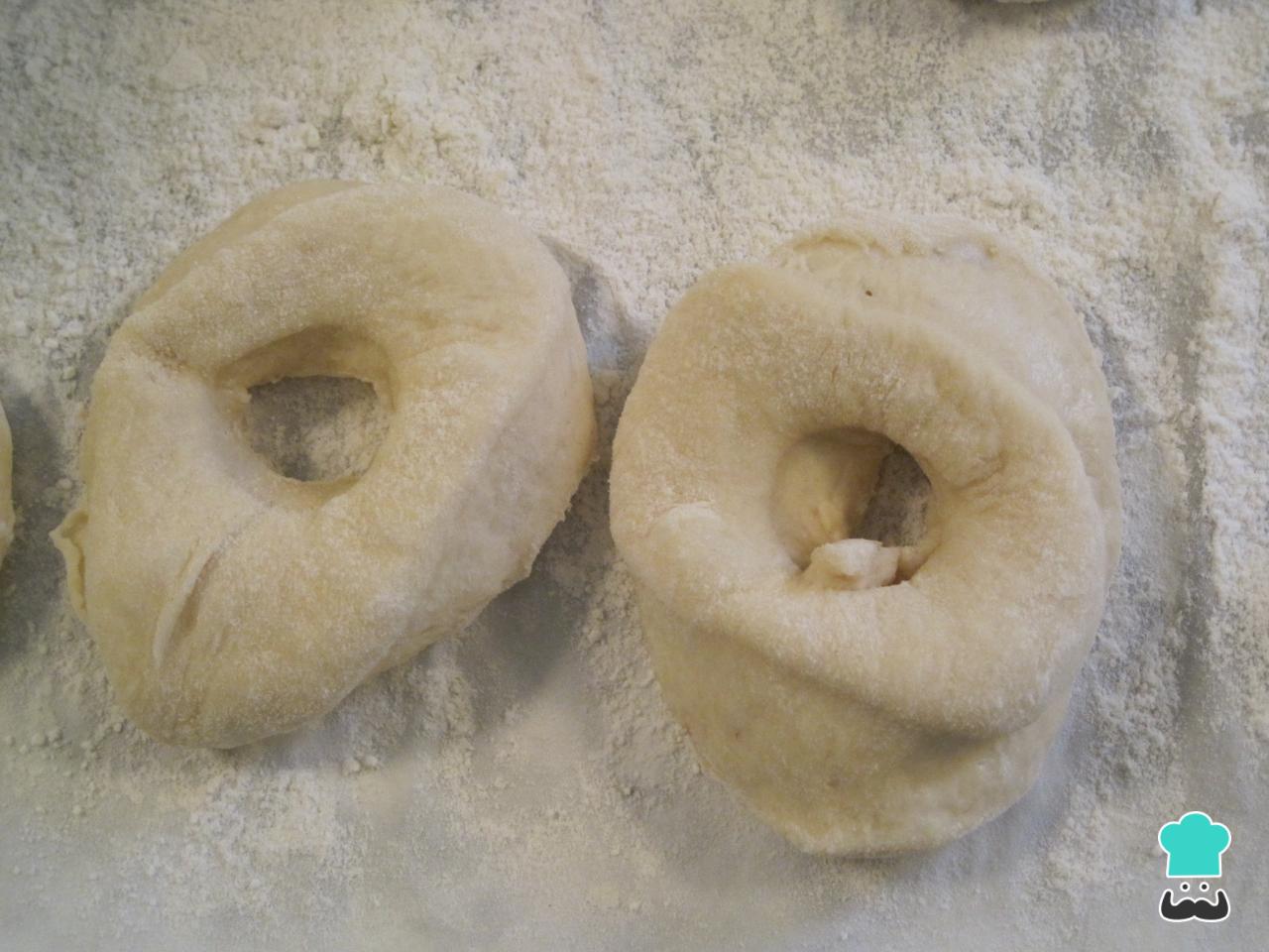 Sem deixar a massa descansar, esquente óleo abundante em uma panela e, quando estiver quente, frite as rosquinhas até dourarem, virando-as uma vez para dourarem por igual. Depois retire e coloque sobre papel absorvente para que escorram o excesso de gordura.