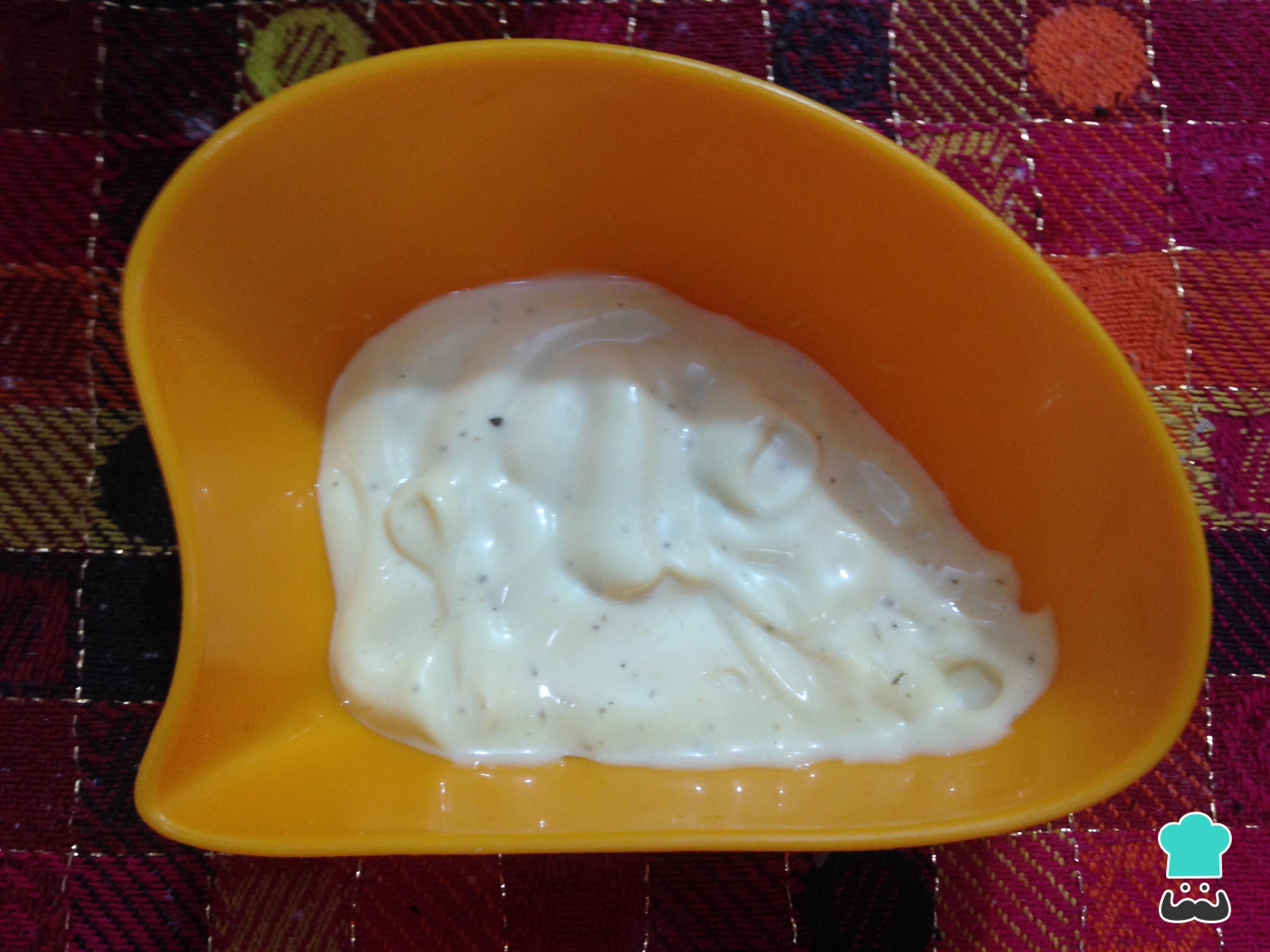 Para o molho, simplesmente misture maionese com mostarda a gosto, azeite de oliva e pimenta do reino.