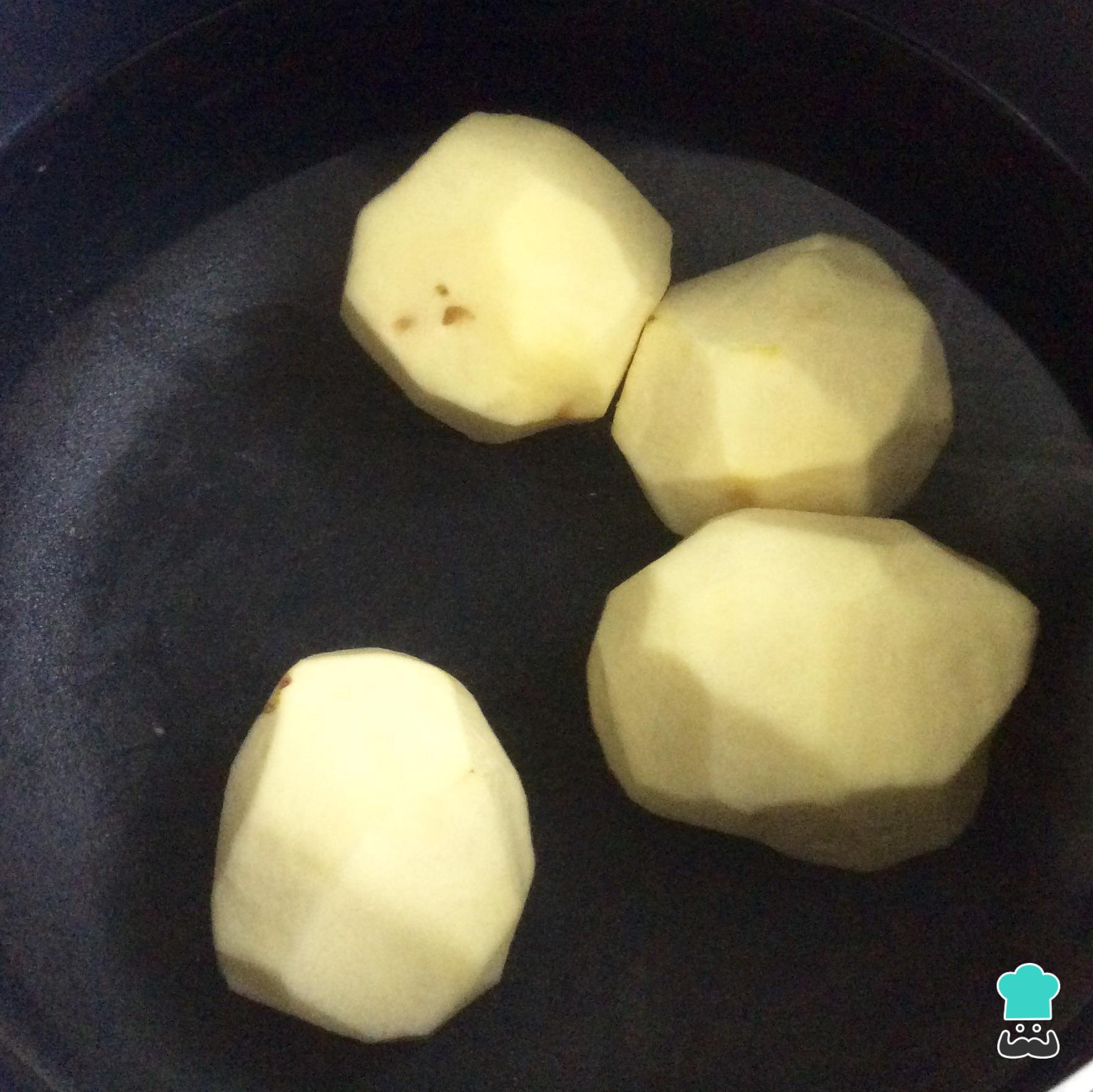 Lave e descasque as batatas, cozinhe-as em água com um pouco de sal até que estejam macias. Para acelerar o preparo, aconselhamos que corte em cubos pequenos.