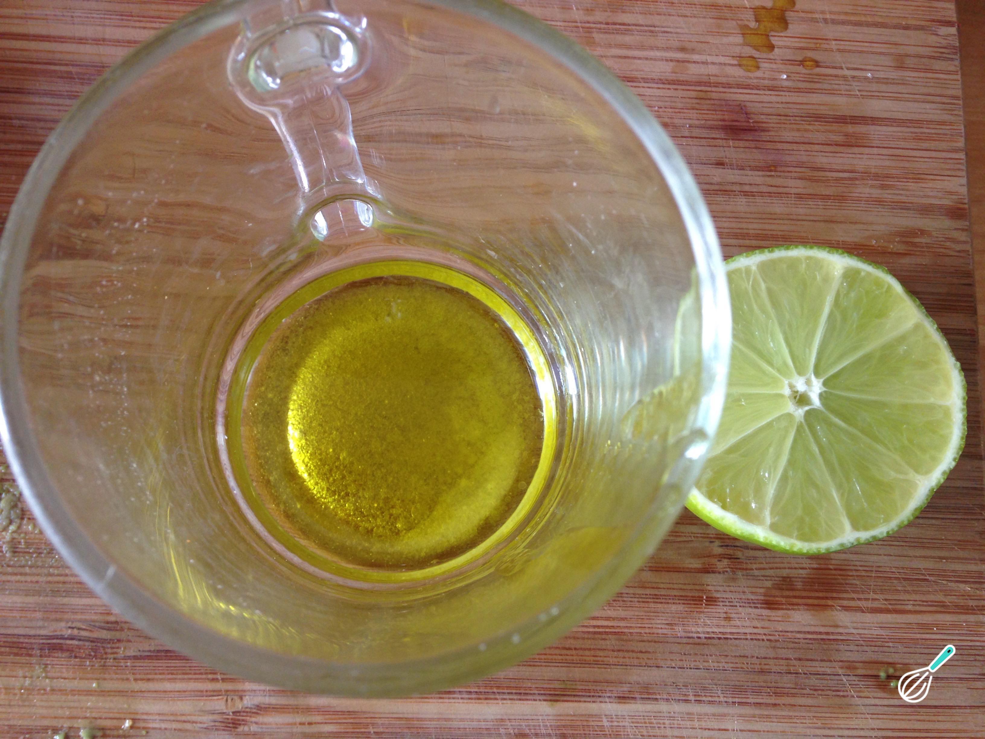 Prepare o molho com azeite de oliva, algumas gotas de limão, uma pitada de sal e uma pitada de açúcar.
