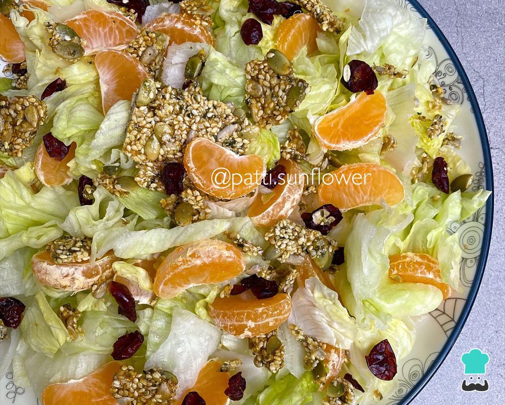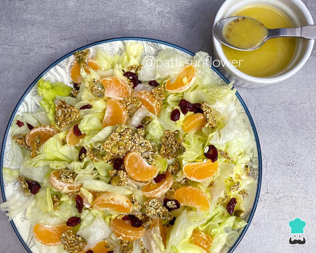 Esse molho de salada caseiro vai super bem com outras combinações de salada, mas com essa fica especial! O azedinho cítrico do molho combina perfeitamente com o doce da barrinha de sementes e as cranberries, já a lindona da tangerina junto com a alface crocante trazem aquele frescor que a saladinha precisa. Continue aqui comigo no TudoReceitas que conto tudinho para vocês como fazer essa salada de alface com tangerina passo a passo!