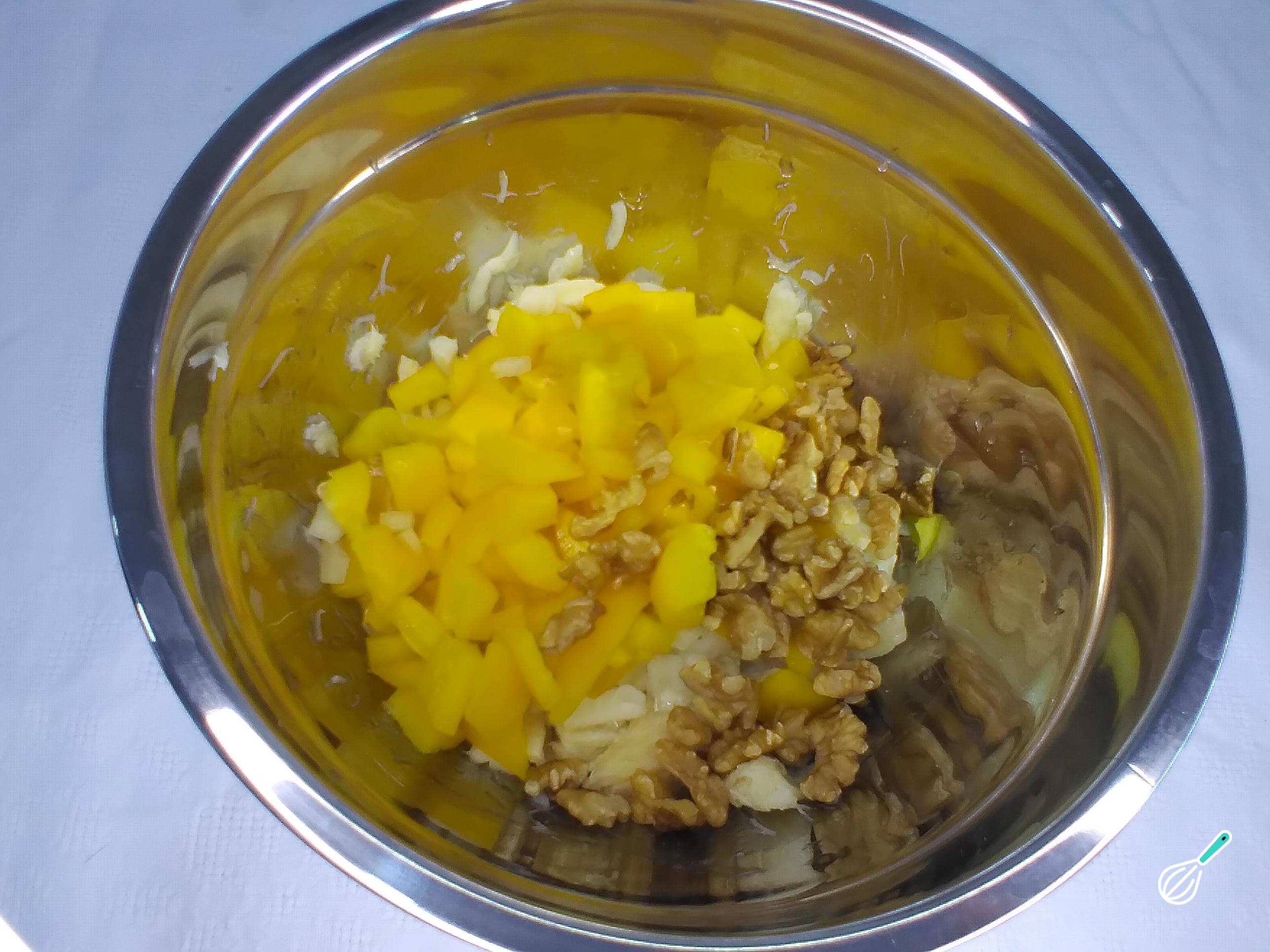 Em seguida, acrescente o restante dos ingredientes. Prove e acerte o sal. Mexa delicadamente, para incorporar muito bem os sabores.
