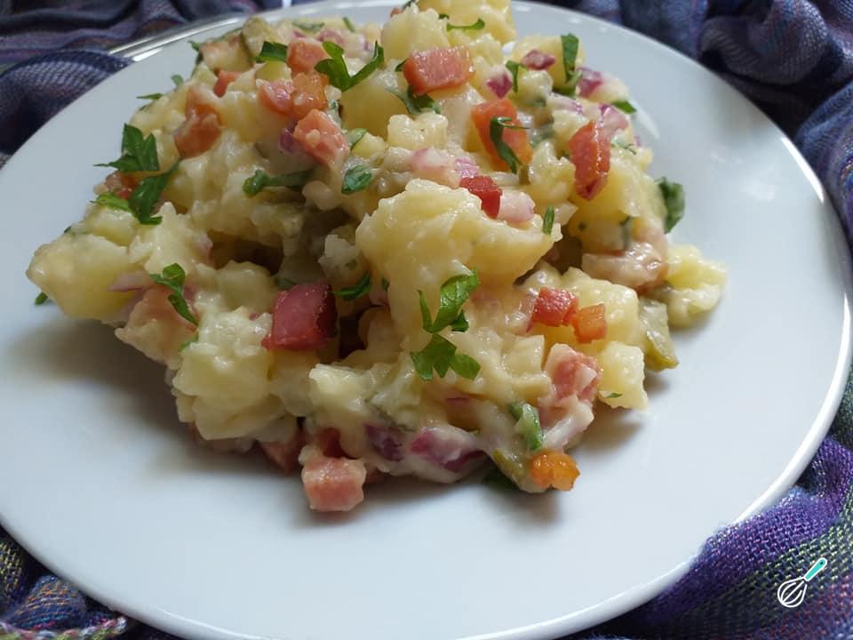 A salada de batata alemã chama-se kartoffelsalat e é extremamente deliciosa! Há diversas variações desta salada de batata na Alemanha, dependendo da região. Algumas levam mostarda, pedaços de pepino, vinagre de vinho ou de maçã, caldo de legumes e por aí vai... O importante é que o ingrediente principal (a batata) sempre se destaca no sabor com todas essas combinações!