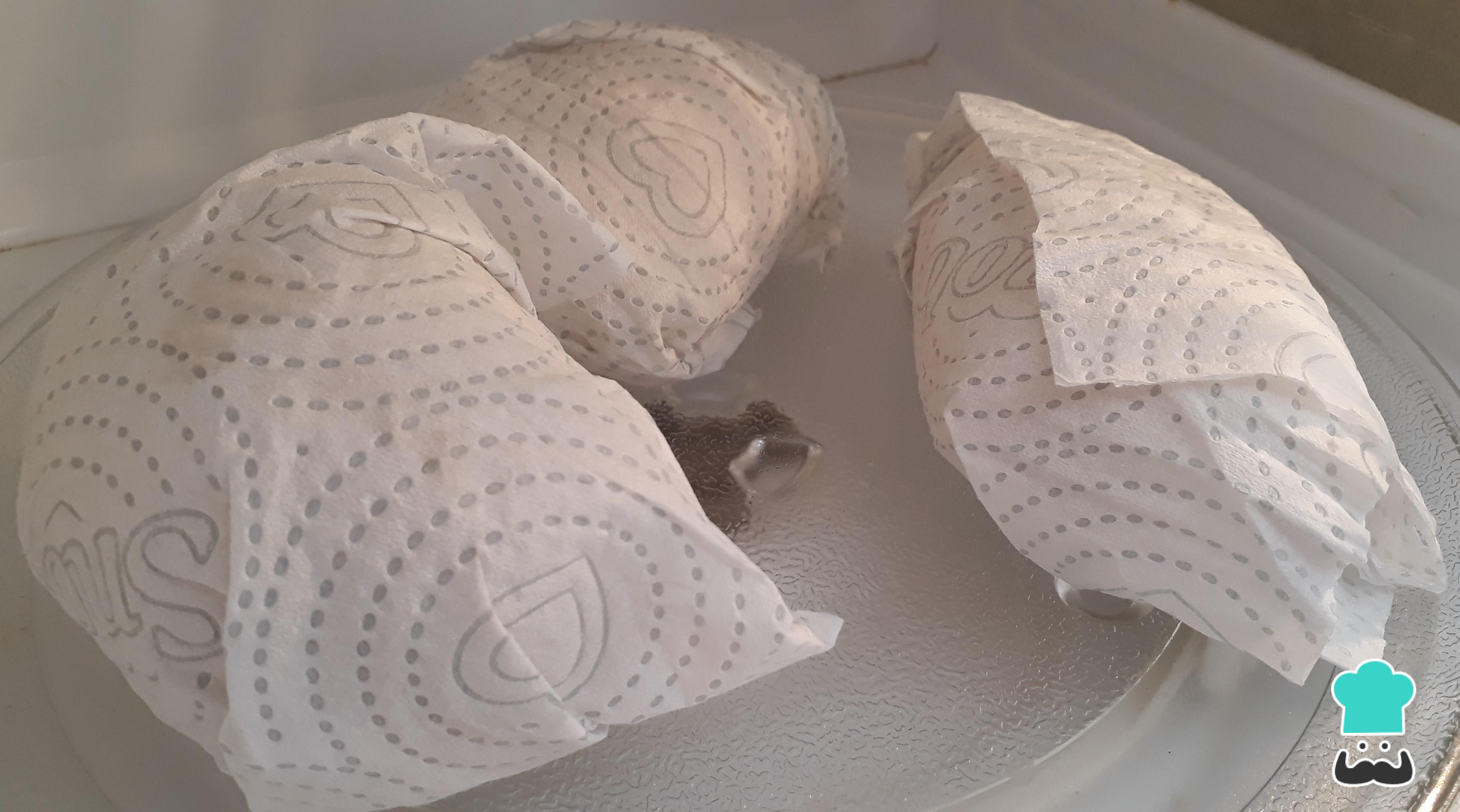 Comece por cozinhar as batatas. Você pode cozinhá-las na panela comum, na pressão ou no microondas, como fiz. Para isso, basta fazer alguns furos pelas batatas usando um garfo, embrulhar no papel toalha e assar de 5 a 8 minutos no microondas em potência máxima, virando na metade do tempo.