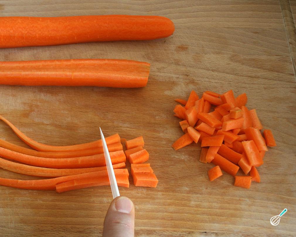 Para cozinhar a beterraba coloque água abundante em uma panela, coloque a beterraba com a casca e leve ao fogo durante 20-25 minutos ou até que ela cozinhe. Coe e quando não estiver mais quente, tire a pele com as mãos ou com a ajuda de um descascador. Deixe esfriar completamente e corte em cubinhos.