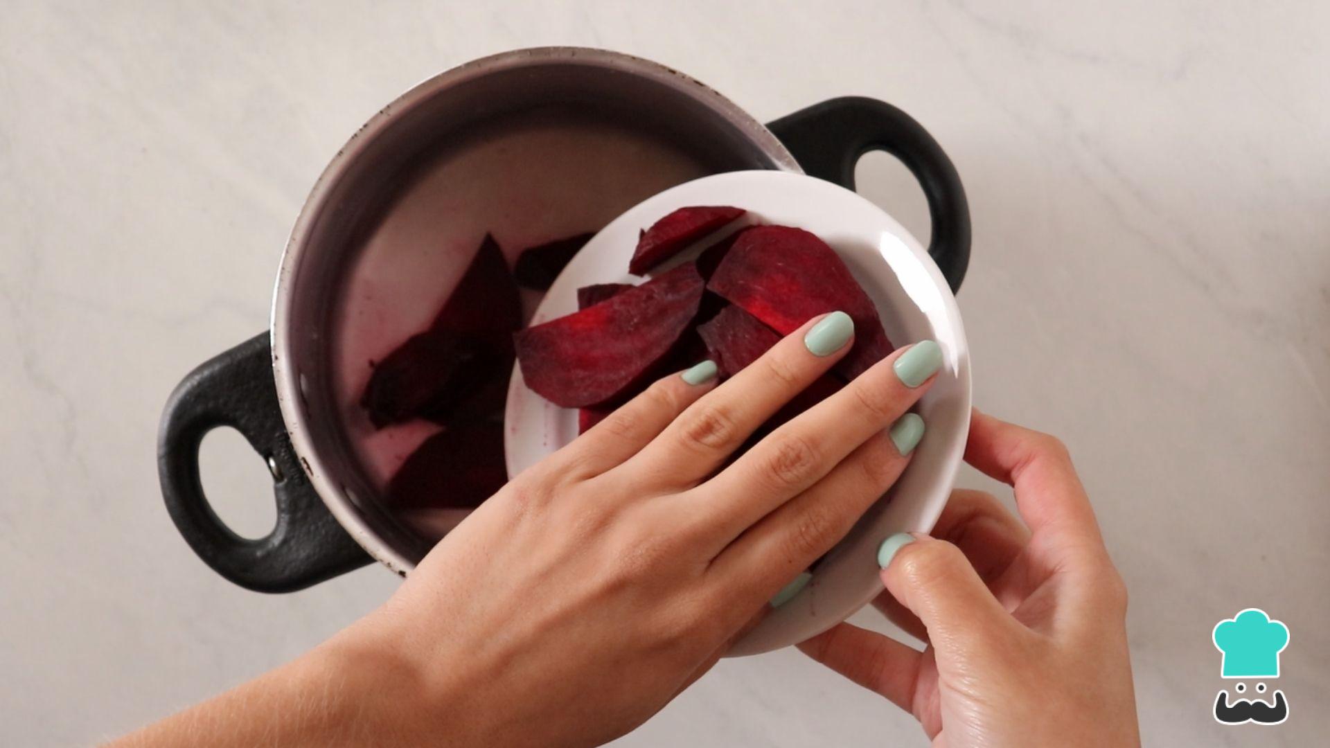 Coloque a beterraba cortada em uma panela e cubra com água. Leve ao fogo e cozinhe até ela ficar macia, mas ainda firme. Deixe esfriar completamente para continuar o preparo desta receita de salada de beterraba cozida com cebola, laranja e alcaparras.