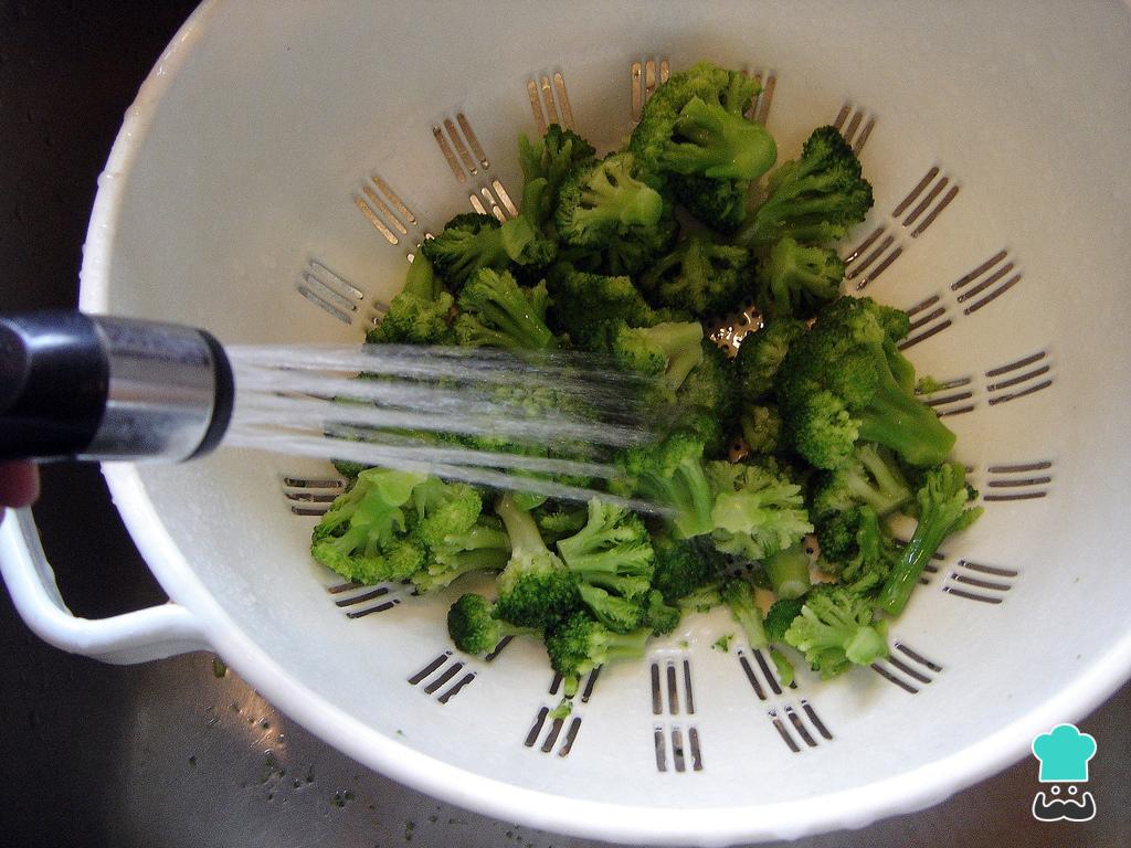 Para preparar essa salada de brócolis com couve flor, comece por lavar bem os legumes. Coloque o brócolis em um saco plástico de cozinha e leve ao microondas por 45 segundos.