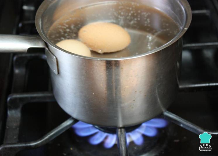 À parte ou na mesma panela do brócolis coza os ovos por 10 minutos se quiser uma gema bem firme, para uma gema mole bastam 7 minutos - confira como saber se o ovo está cozido. Retire da panela, deixe esfriar um pouco, descasque e corte em pedaços.