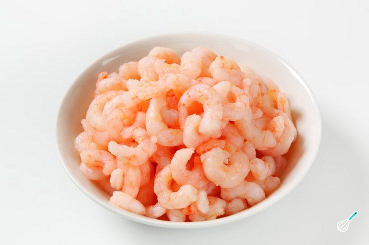 Em uma panela, cozinhe os camarões em água fervente com sal. Escorra e reserve.