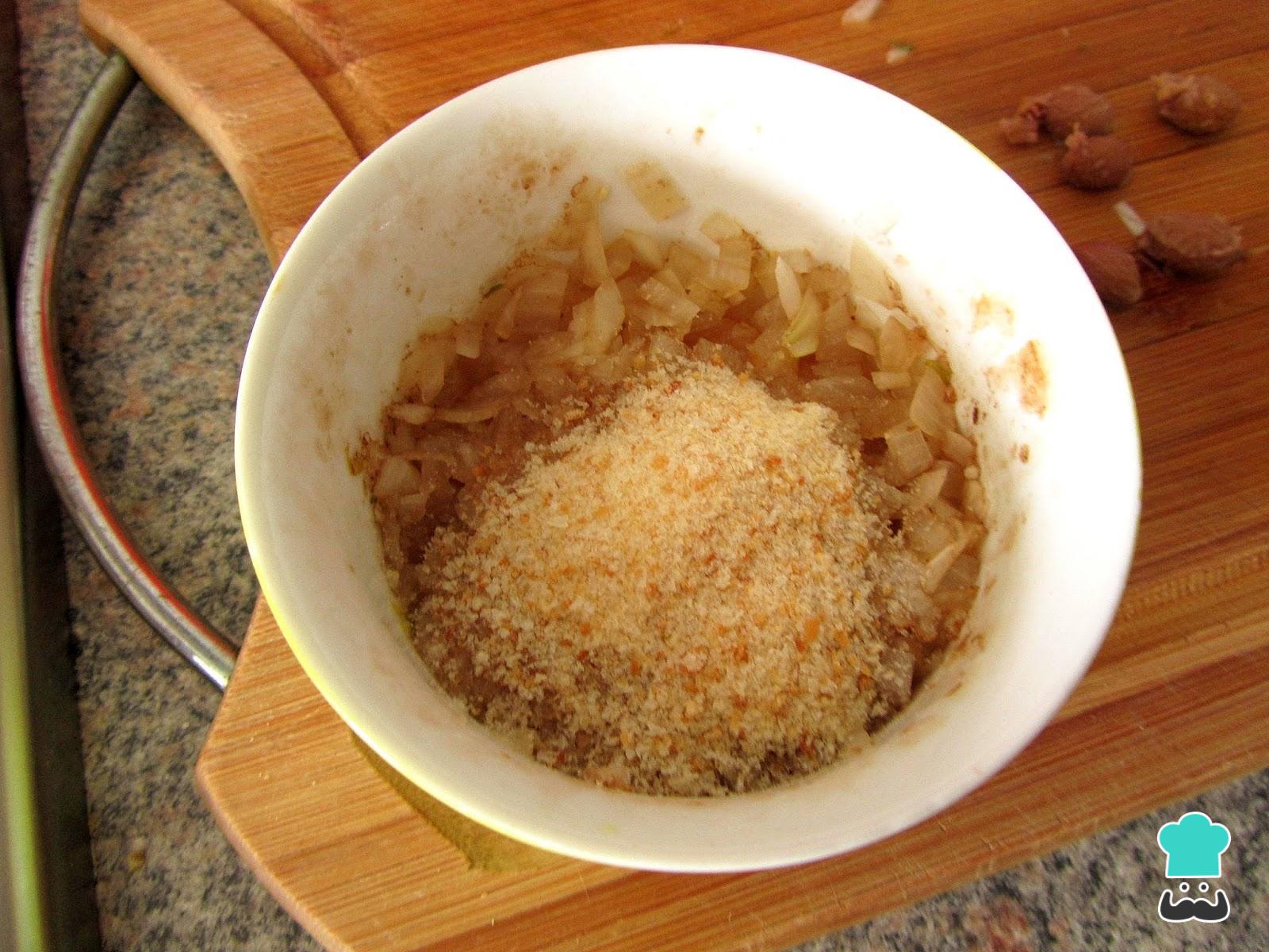 Quando a cebola estiver transparente, por ter absorvido o vinagre, acrescente a farinha de rosca e misture. Coloque a chicória em um bowl grande e acrescente a alga, as azeitonas, as alcaparras e esta mistura de cebola, alho e farinha de rosca.
