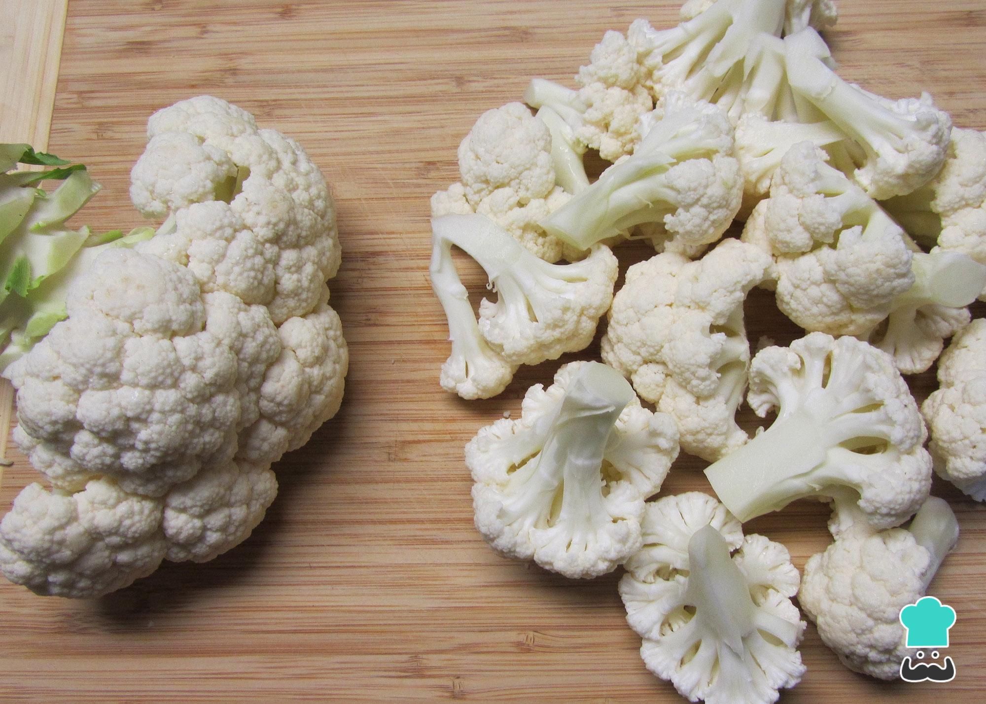 Lave bem a couve-flor e corte em pedaços. Coloque numa panela com os ovos, cubra com água e adicione sal. Cozinhe no fogo médio por 5 minutos depois de ferver, ou até a couve-flor ficar macia mas não desfazendo. Retire da água e deixe esfriar.